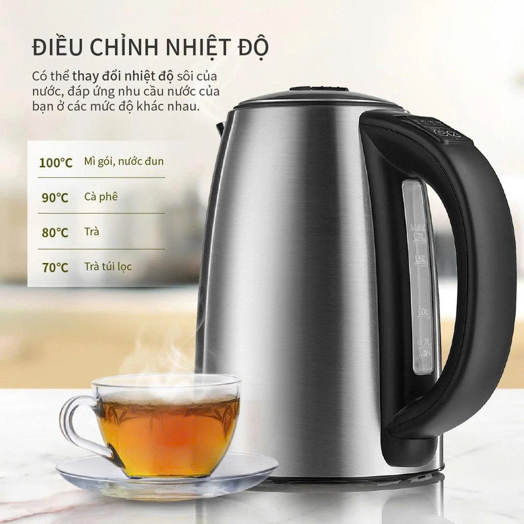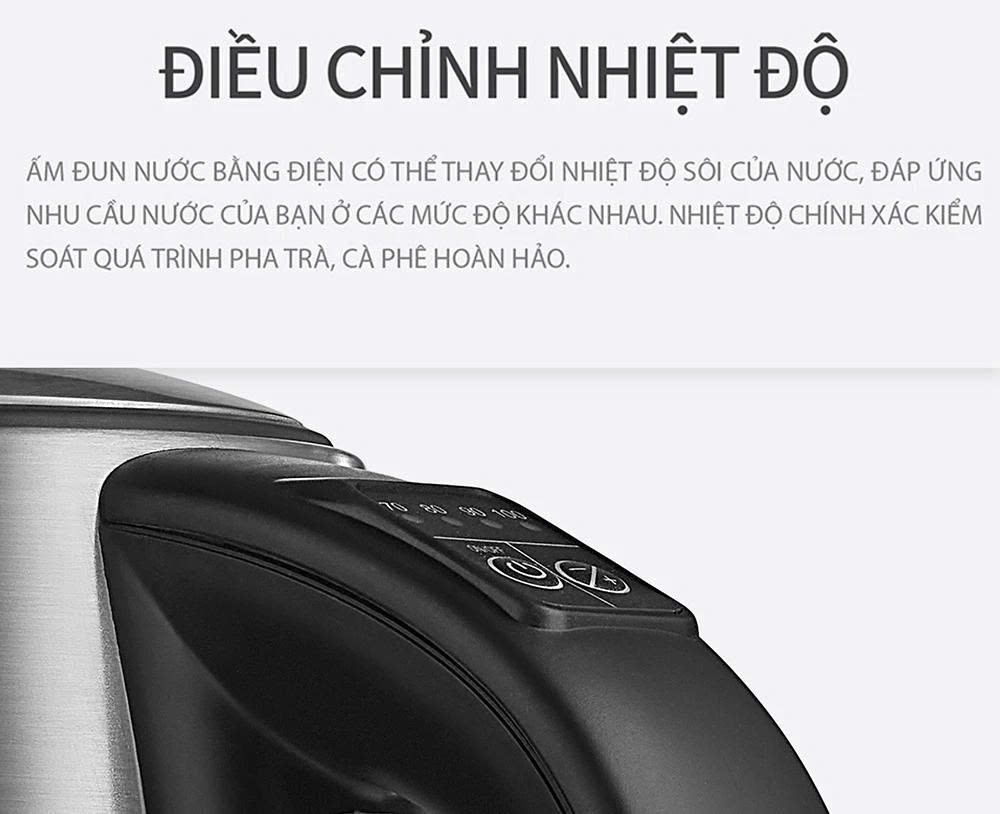 – Ấm đun siêu tốc có thể được điều chỉnh nhiệt độ theo nhu cầu của người dùng mong muốn.