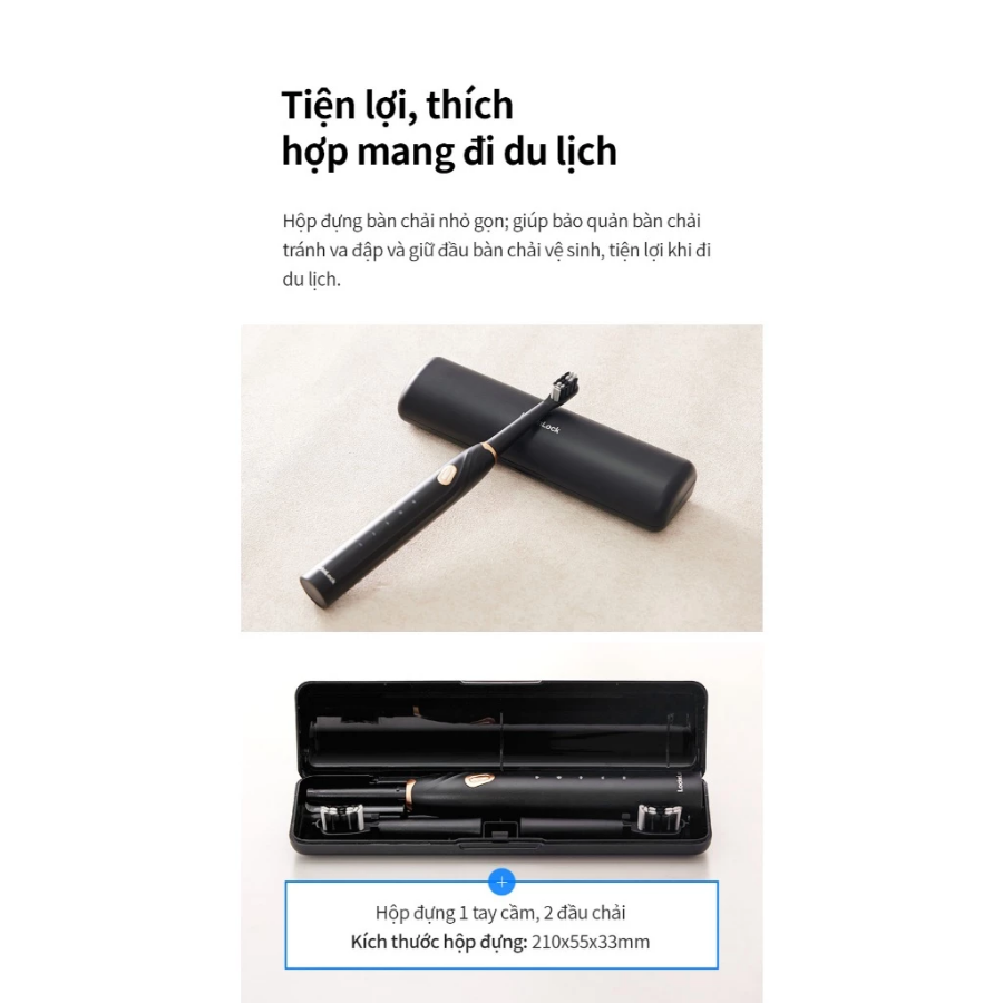 – HỘP ĐỰNG BÀN CHẢI ĐI KÈM: Hộp đựng bàn chải nhỏ gọn; giúp bảo quản bàn chải tránh va đập và giữ đầu bàn chải vệ sinh, tiện lợi khi đi du lịch.
