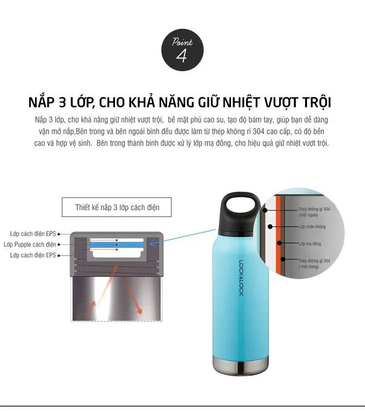 – Ruột làm bằng Inox 304, nắp nhựa PP, không chứa BPA, chất liệu an toàn cho sức khỏe