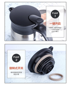 Nắp bật một chạm dễ thao tác, miệng rót rộng, tay cầm chắc chắn. Thiết kế vân sóng hiện đại vừa giúp cầm nắm chống trượt, vừa mang lại sự sang trọng, phù hợp sử dụng trong văn phòng, phòng khách hay khi tiếp khách.