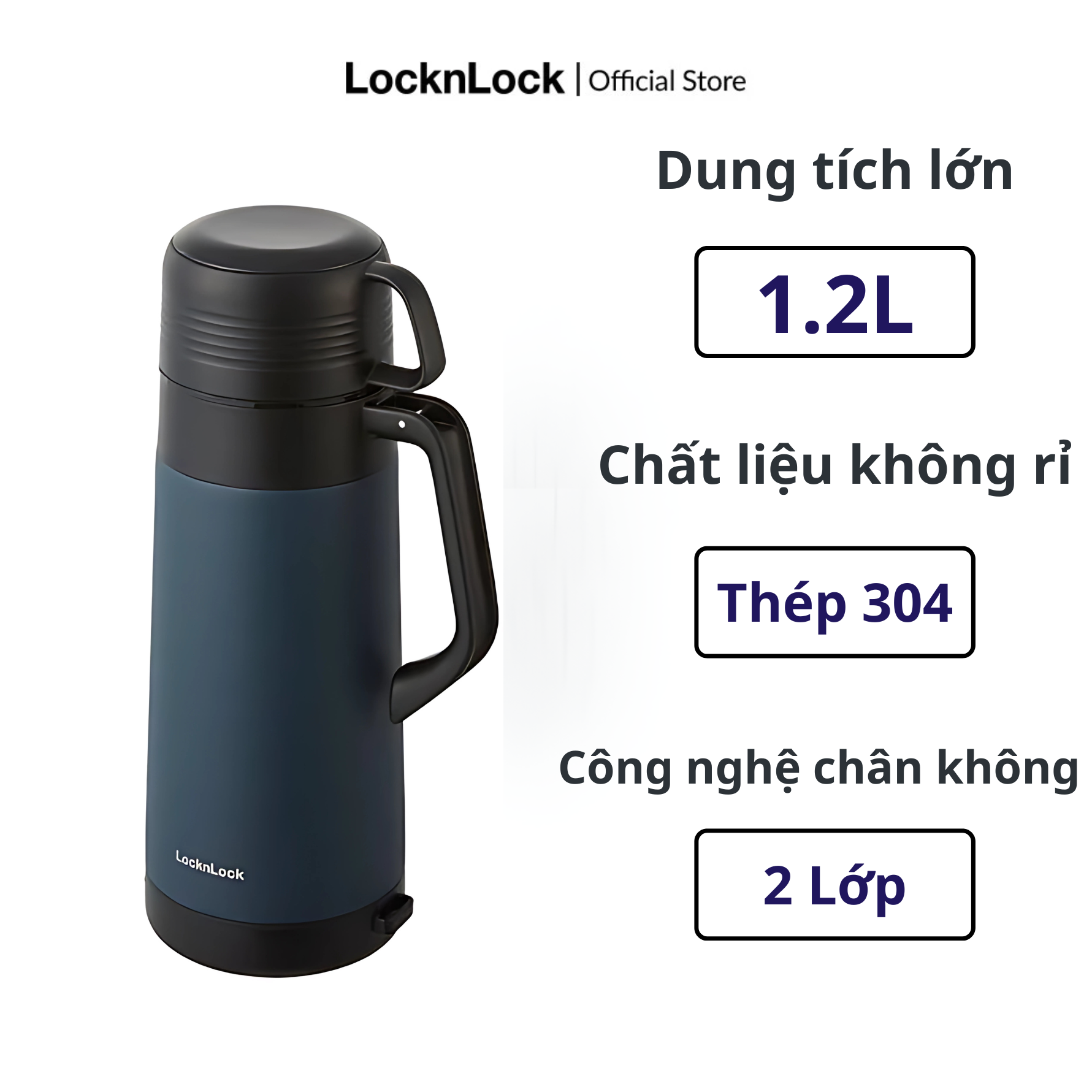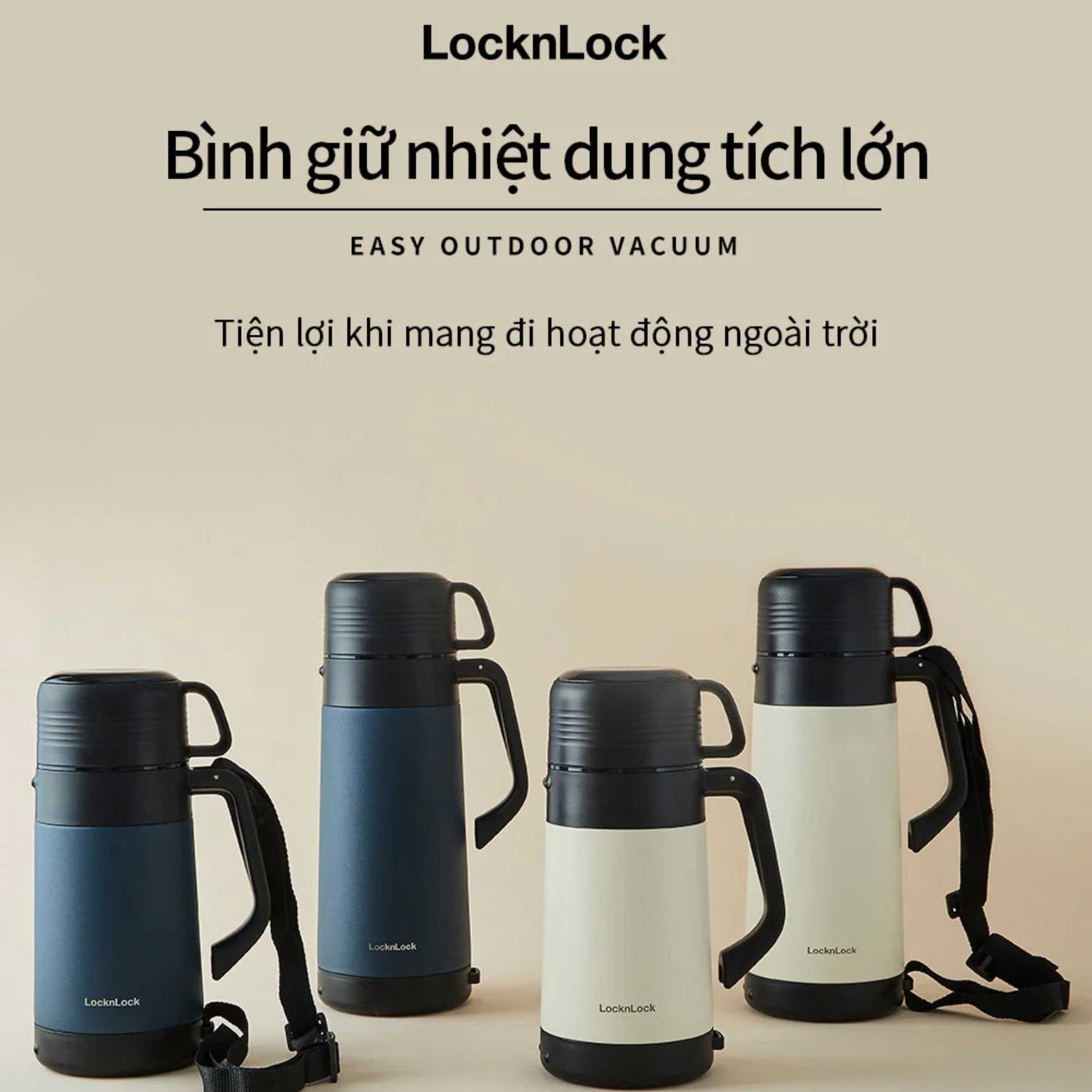 Bình giữ nhiệt Lock&Lock Easy Outdoor Vacuum Bottle 1,2L và 1,8L có nắp cốc và dây đeo vai