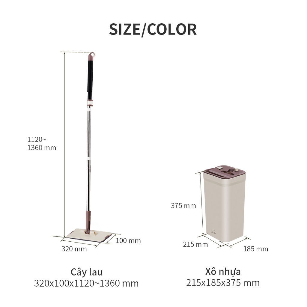 Sản phẩm được cấp bằng sáng chế về tính năng giặt và vắt nước tại một vị trí duy nhất. Chỉ cần nhấn nút để nước trong ngăn vắt bông lau chảy ra ngoài thùng đựng nước.