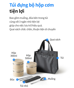 - TÚI ĐỰNG BỘ HỘP CƠM TIỆN LỢI: Bao gồm muỗng, đũa bên trong túi cùng với 3 ngăn nhỏ tiện lợi giúp cho việc lưu trữ hiệu quả. Quai xách chắc chắn, thuận tiện di chuyển