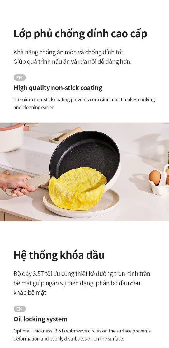 – Chống dính mặt trong: ILAG PTFE (chảo)
