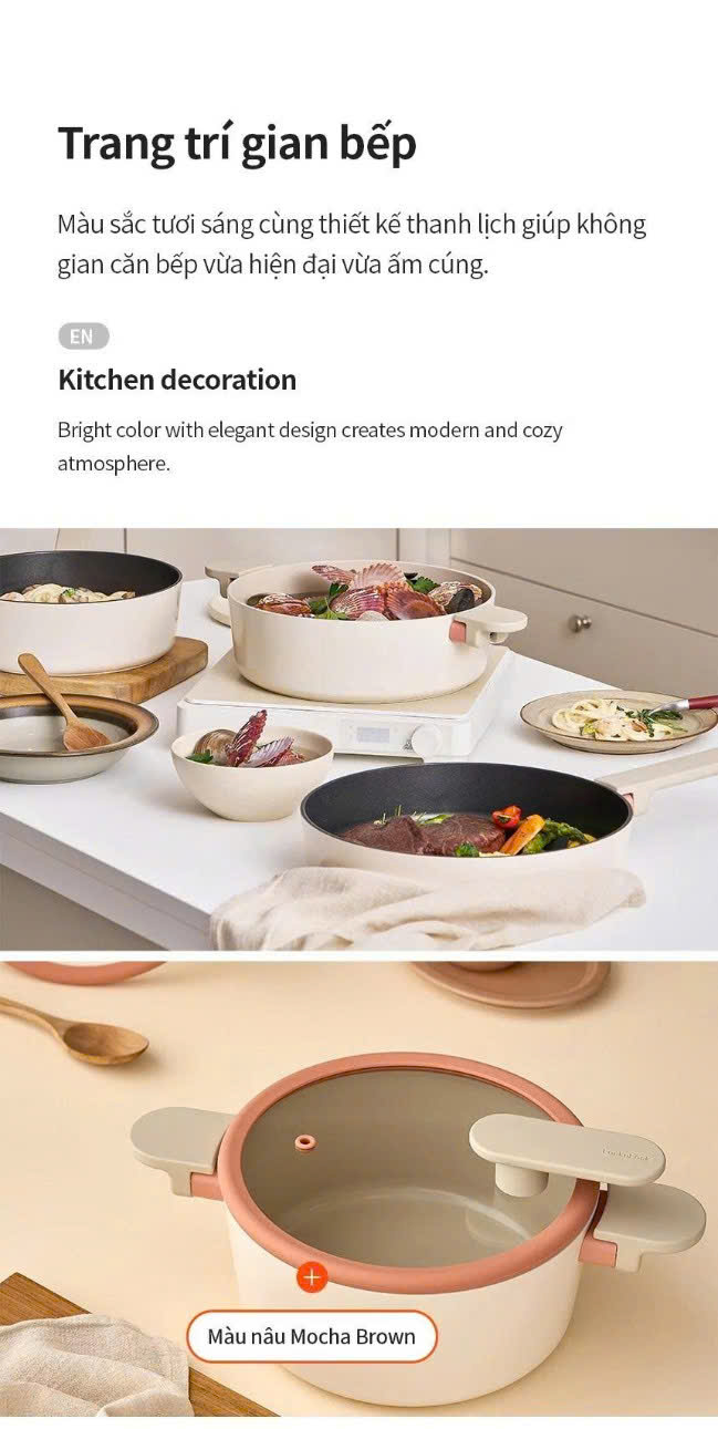 Chảo chống dính Suit Bric LocknLock 26CM- CAF2655IH – Màu Ivory – Bếp Từ – Hàng chính hãng