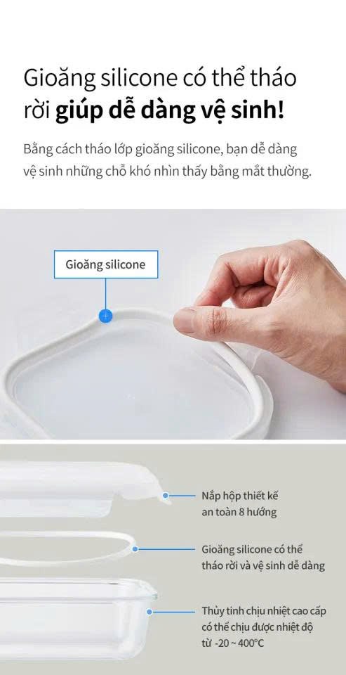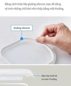 GIOĂNG SILICONE CÓ THỂ THÁO RỜI: Dễ dàng vệ sinh các bộ phận riêng lẻ và các góc của nắp hộp.