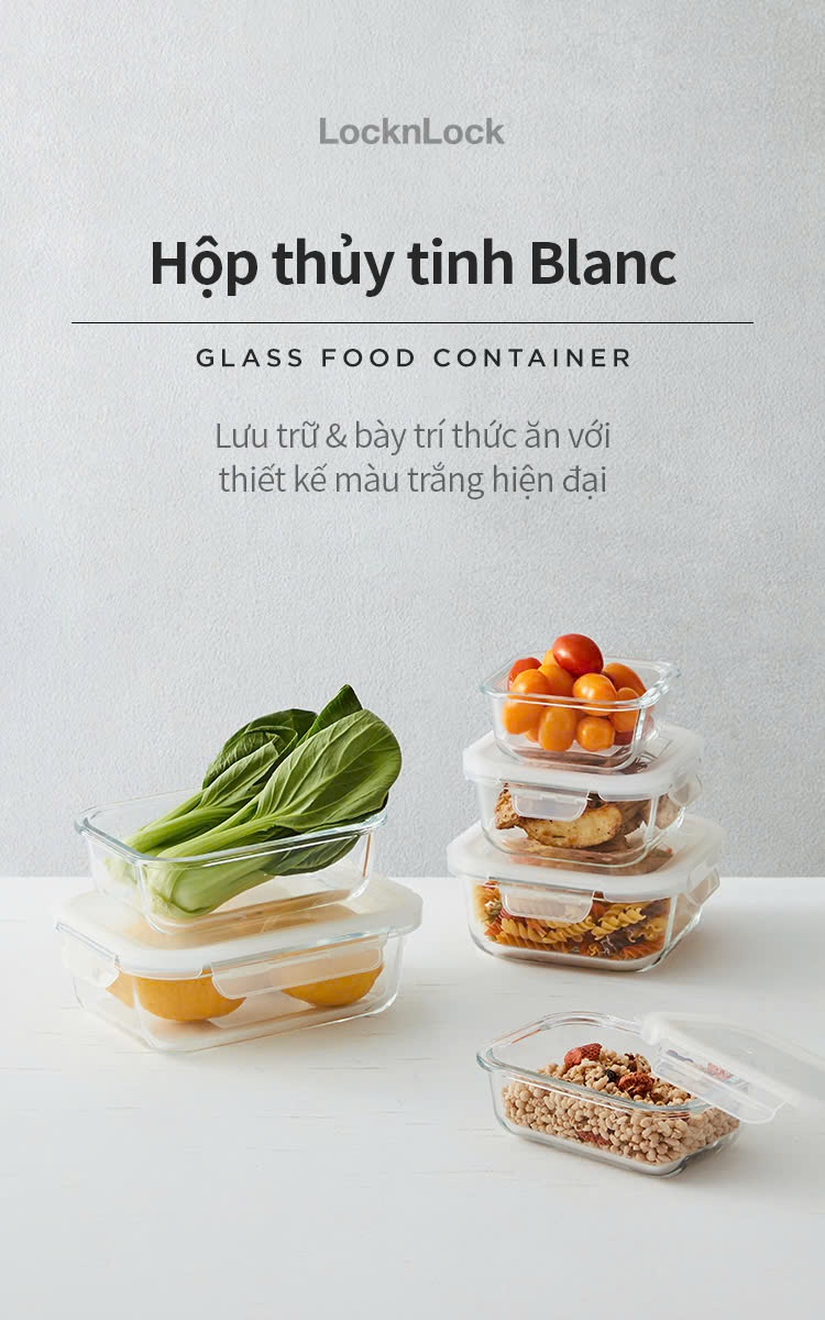 Hộp bằng thủy tinh trong suốt giúp quan sát thực phẩm bên trong dễ dàng.