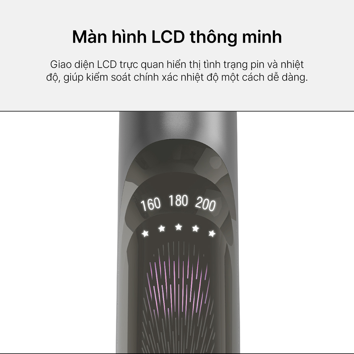 – MÀN HÌNH LCD THÔNG MINH: Giao diện LCD trực quan hiển thị tình trạng pin và nhiệt độ, giúp kiểm soát chính xác nhiệt độ một cách dễ dàng.