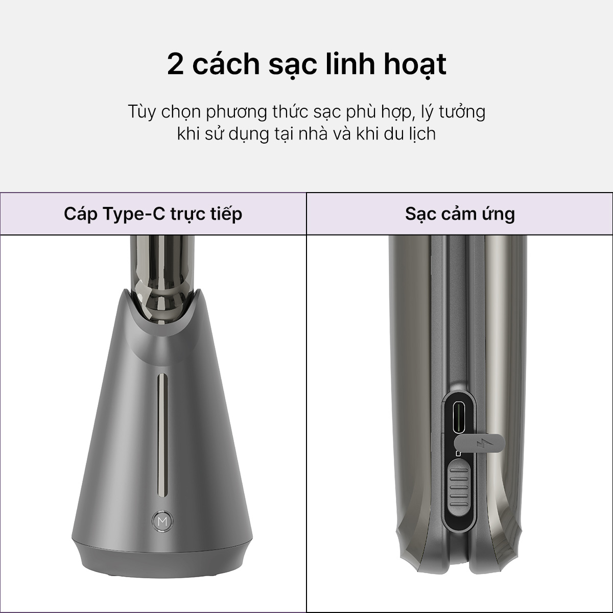 Tùy chọn phương thức sạc phù hợp, lý tưởng khi sử dụng tại nhà và khi du lịch: