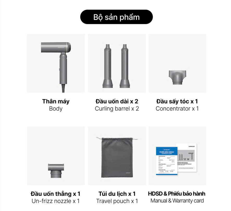 – TÚI DU LỊCH ĐI KÈM: Túi đựng tiện lợi giúp bảo quản máy sấy và phụ kiện một cách gọn gàng khi di chuyển.