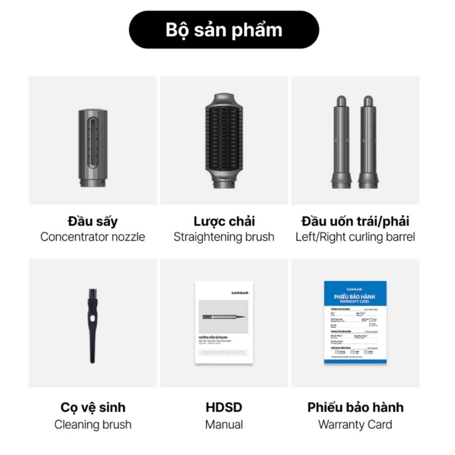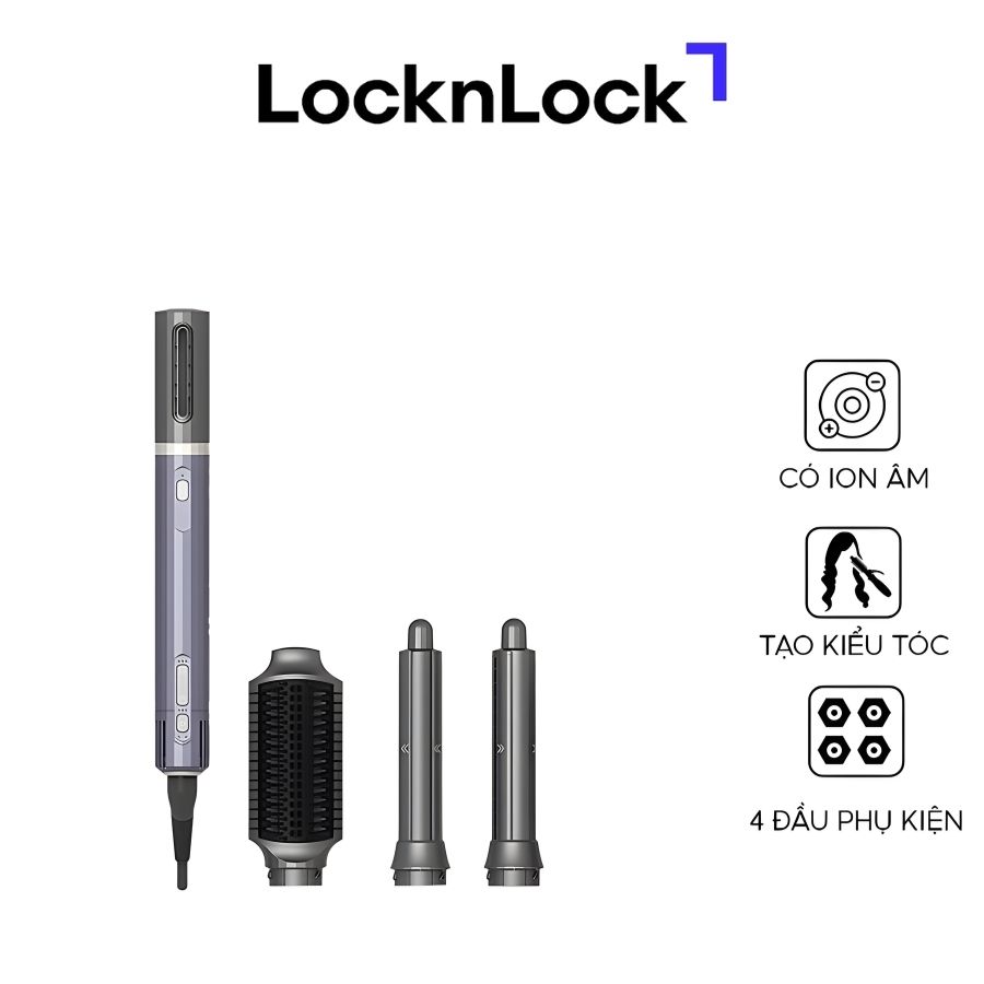 Máy Sấy Tạo Kiểu Tóc Ion Âm LocknLock ENA526GRY 1000-1200W, Hàng Chính Hãng, 4 Đầu Phụ Kiện –