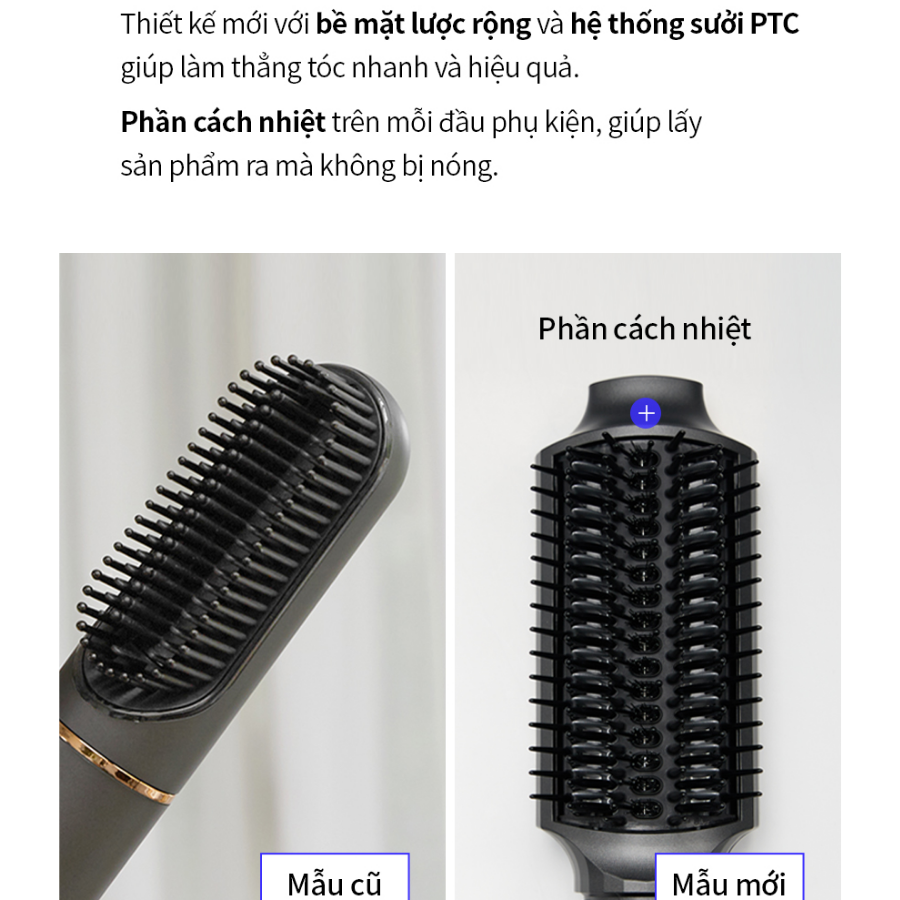 LƯỢC CHẢI THẲNG VỚI CHẾ ĐỘ SƯỞI PTC: Trang bị hệ thống sưởi PTC giúp nhiệt được truyền nhanh và đều, giúp làm thẳng tóc hiệu quả hơn.