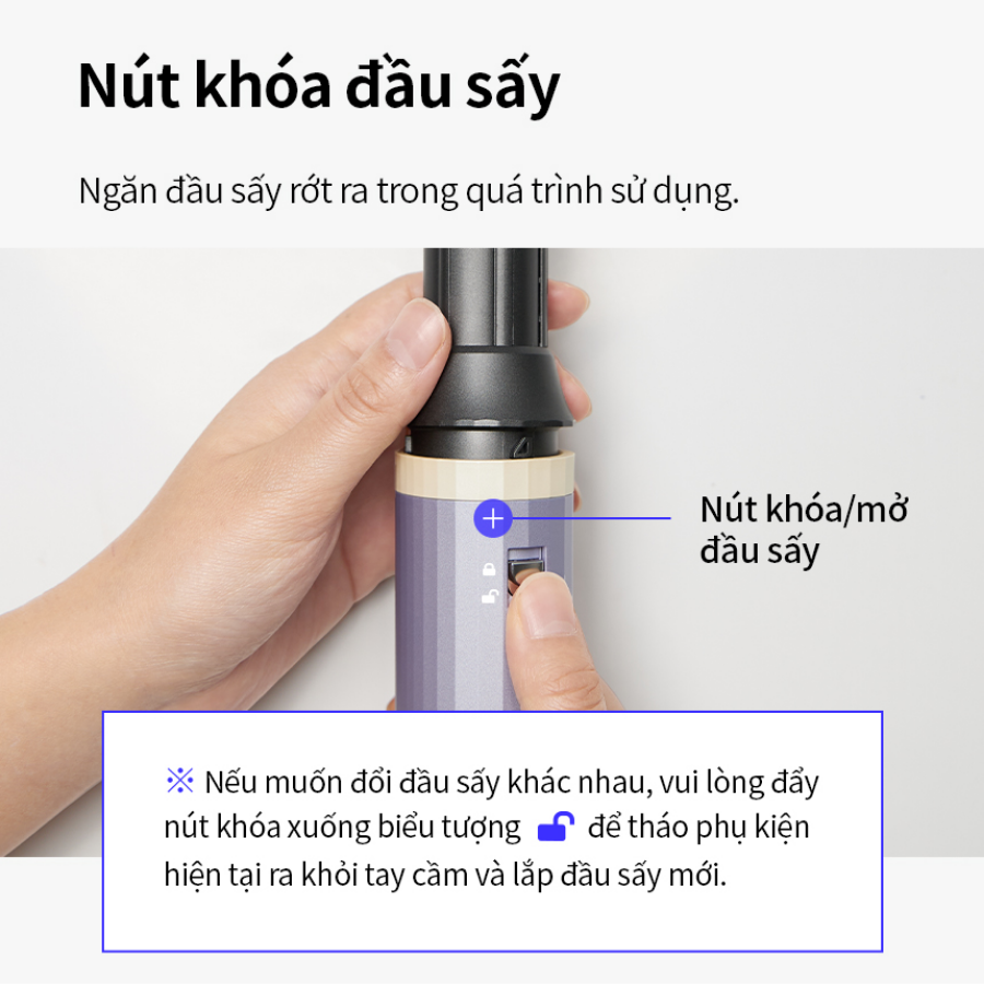 NÚT KHÓA ĐẦU SẤY: Ngăn đầu sấy rớt trong quá trình sử dụng