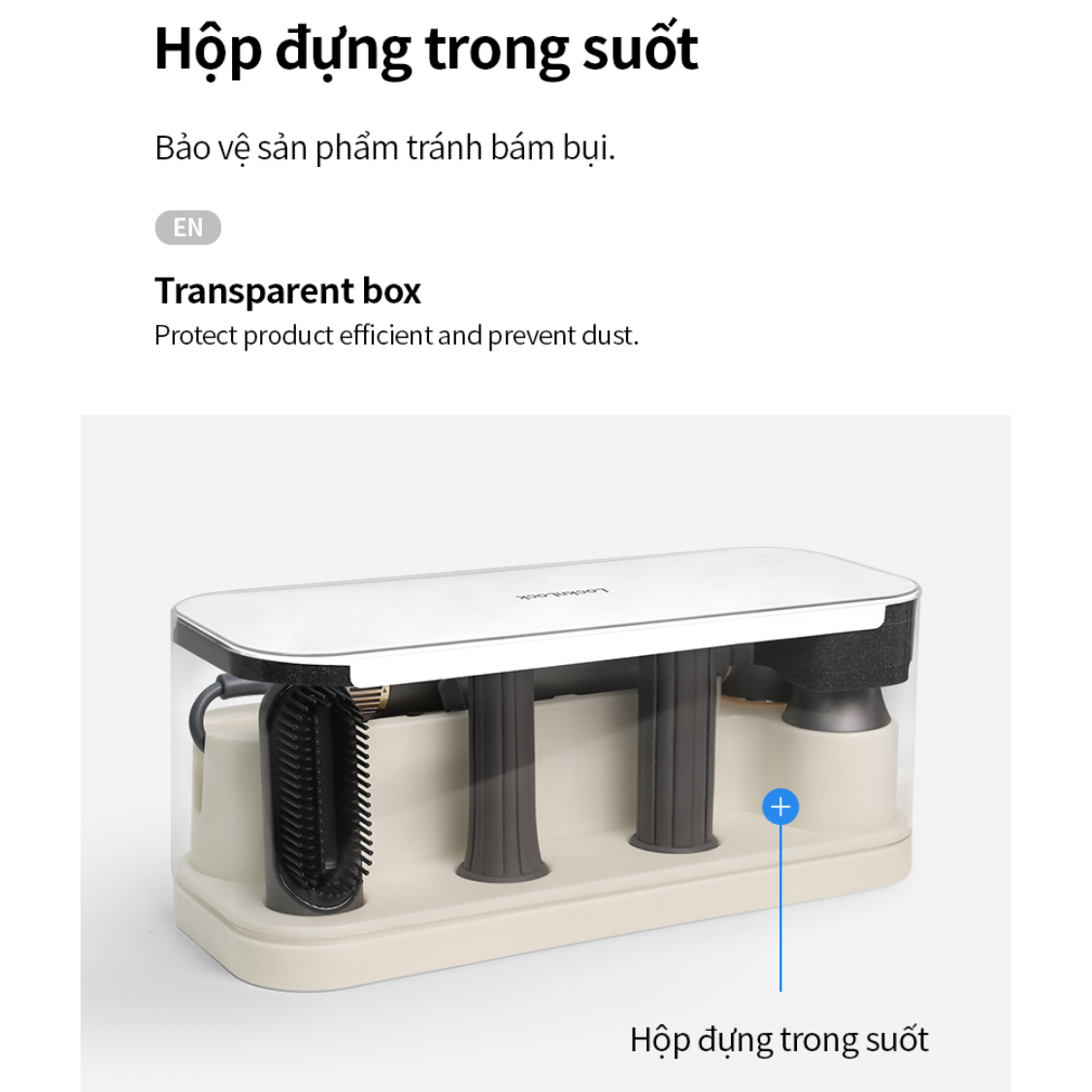 HỘP ĐỰNG TRONG SUỐT: Bảo vệ sản phẩm tránh bám bụi