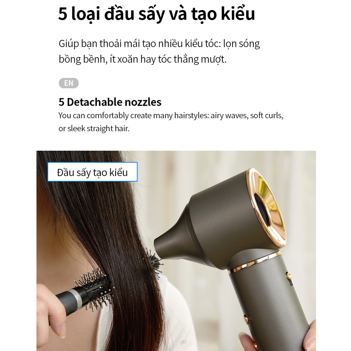 – Đầu sấy tạo kiểu: Dùng tạo kiểu tóc
