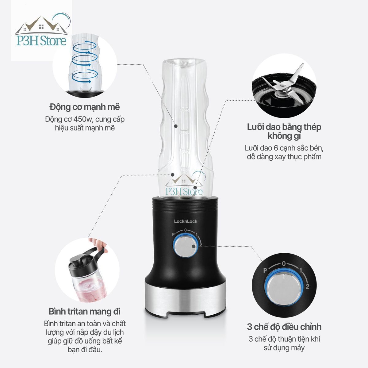 – Lưỡi dao bằng thép ko gỉ , sắc bén , dễ dàng xay thực phẩm