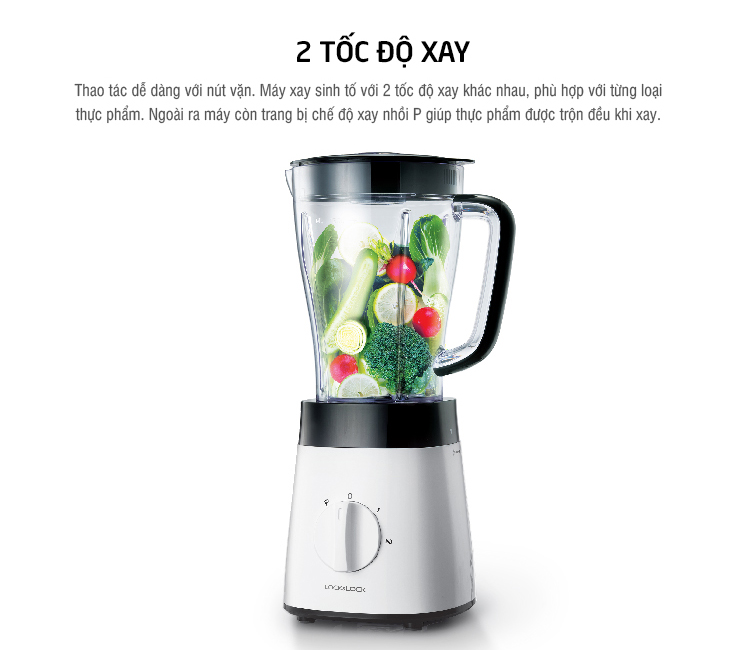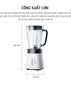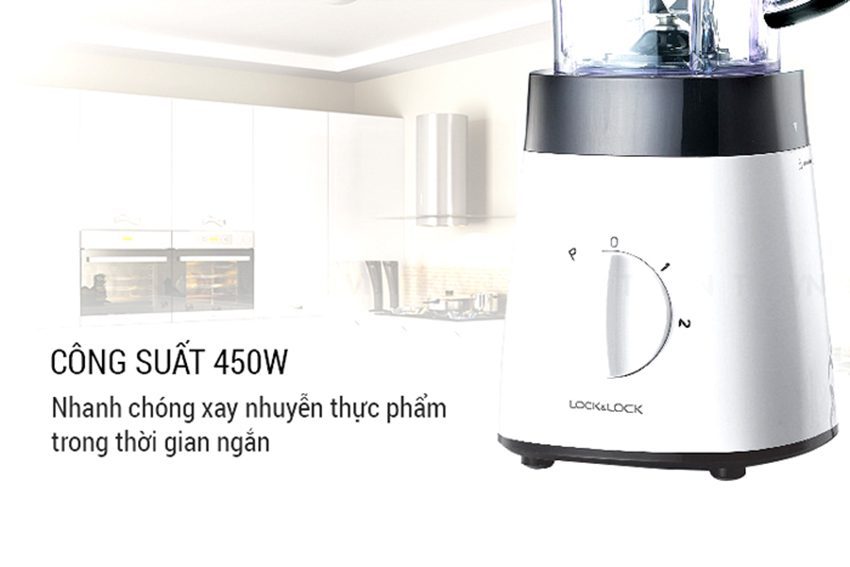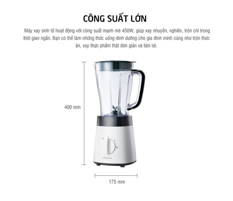 Máy xay hoạt động với công suất 450W và lưỡi dao inox sắc bén, không gỉ sét, cấu tạo răng cưa đặc biệt sẽ nhanh chóng xay nhuyễn thực phẩm trong thời gian ngắn, giúp bạn dễ dàng có được những ly sinh tố thơm ngon, bổ dưỡng đồng thời tiết kiệm nhiều thời gian hơn cho cuộc sống.