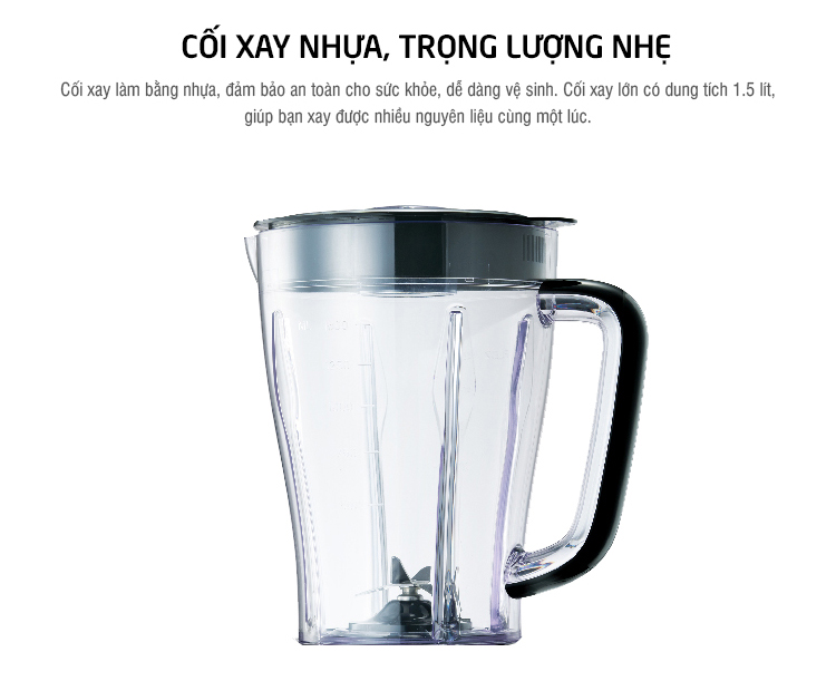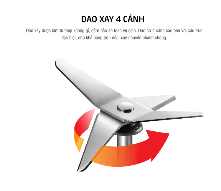 Máy xay sinh tố được trang bị lưỡi dao chắc chắn, sắc bén được làm bằng inox 304 dễ dàng chém và xay nhỏ nhiều loại thực phẩm, trái cây, rau củ khác nhau. Hơn nữa, chất liệu inox 304 này đảm bảo an toàn cho sức khỏe người sử dụng, không thôi nhiễm các chất có hại trong quá trình xay, chế biến thực phẩm, đồng thời còn cho tuổi thọ sử dụng lâu dài.