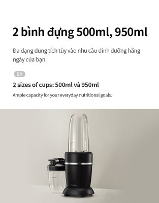 2 BÌNH ĐỰNG (950ml+500ml): Sức chứa dồi dào hỗ trợ dinh dưỡng hàng ngày của bạn.