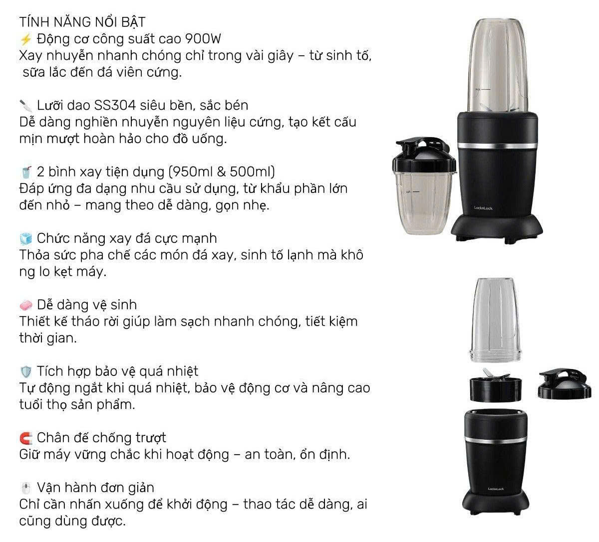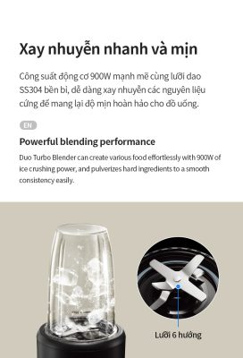ĐỘNG CƠ MẠNH MẼ: Công suất lớn 900W dễ dàng làm sữa lắc, sinh tố trong tít tắc.