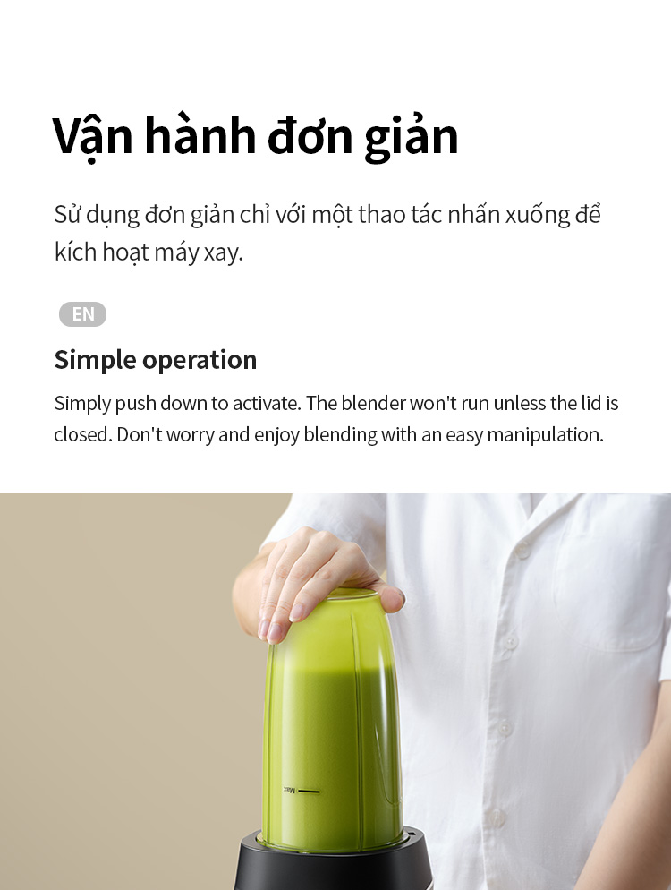 – Trước khi khởi động sản phẩm, vui lòng đảm bảo cốc xay và đế dao được lắp đúng vị trí.