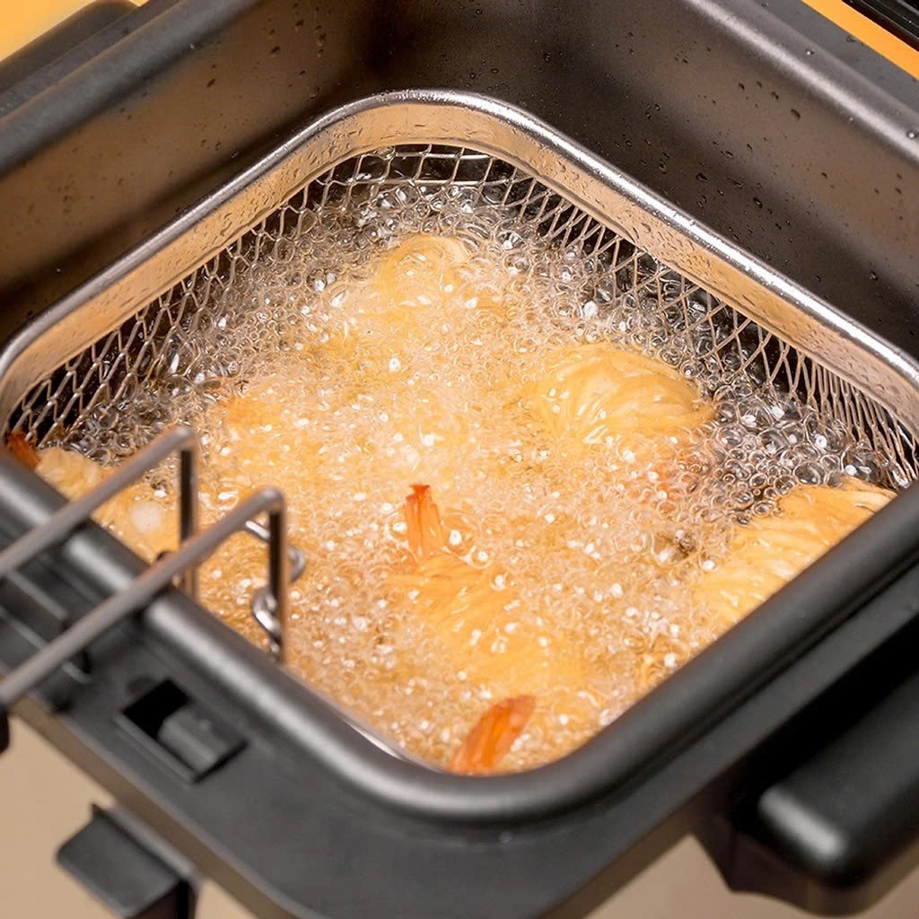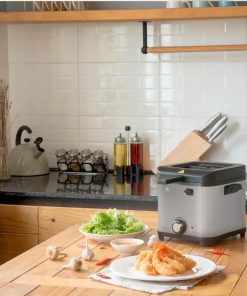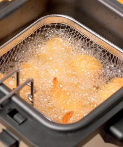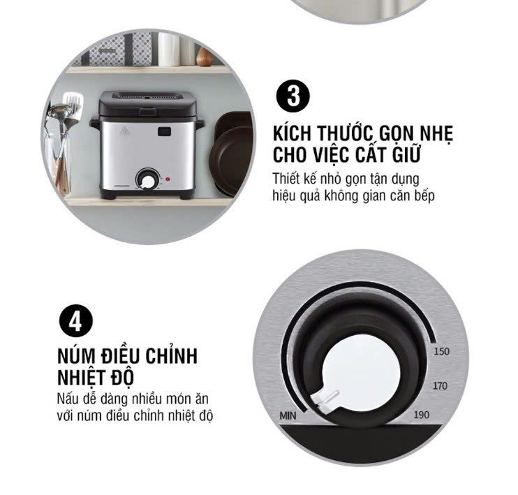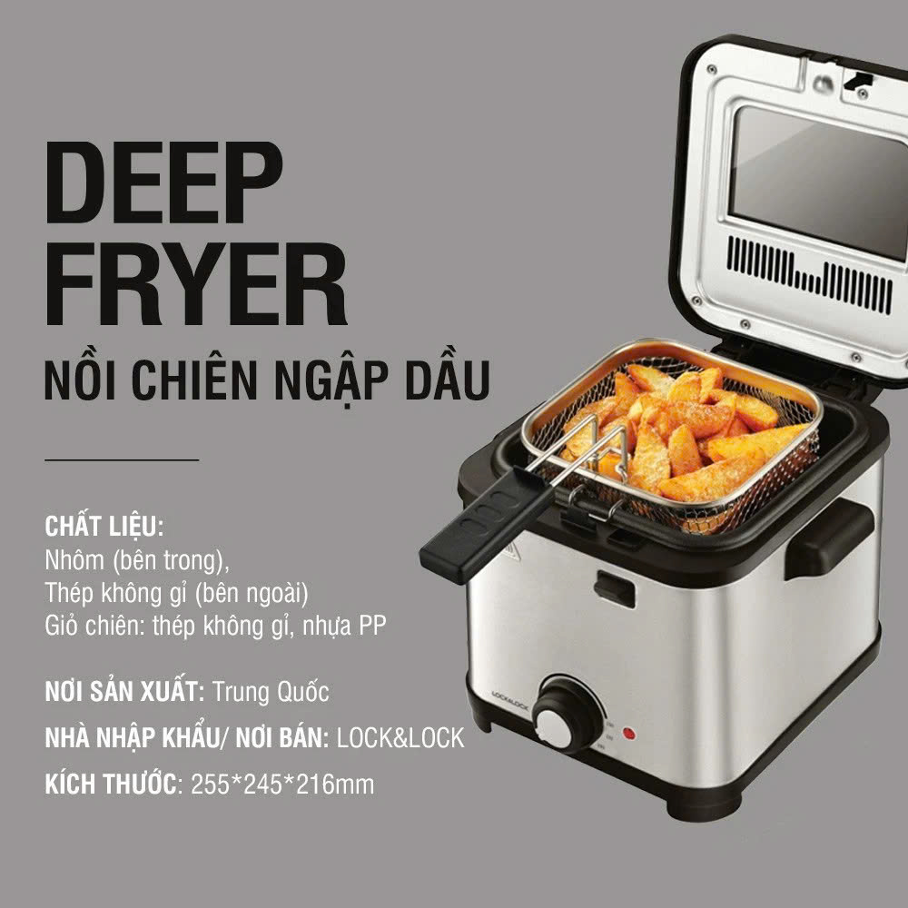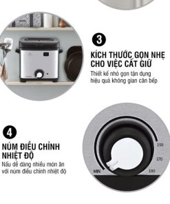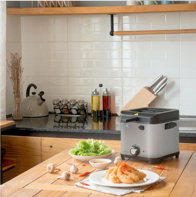 - Điều chỉnh nhiệt độ linh hoạt: Núm xoay cho phép tùy chỉnh nhiệt độ phù hợp với từng loại thực phẩm khác nhau (khoai tây, cá, thịt…).