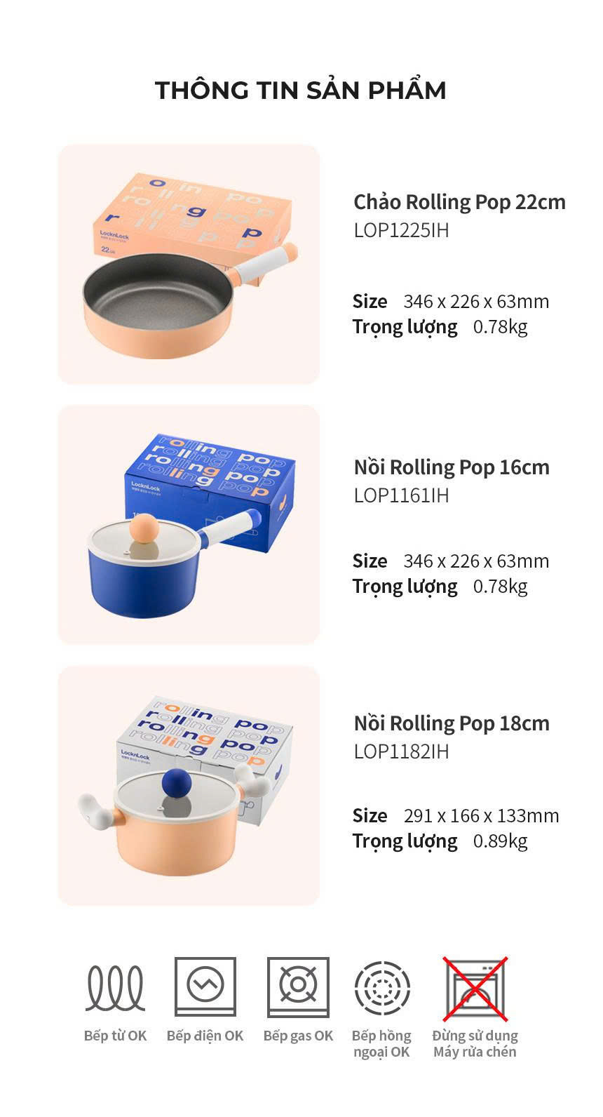 – PHÙ HỢP VỚI PHONG CÁCH SỐNG CỦA BẠN: Kích thước nồi, chảo hoàn hảo cho nhu cầu sử dụng của bạn. Lí tưởng cho những bữa lỡ đơn giản, cơm trưa, hay ăn nhẹ vào buổi đêm. Kích thước nhỏ gọn phù hợp cho 1-2 người, vừa vặn trên bếp từ và có hiệu suất dẫn nhiệt tốt. Rolling Pop nhỏ nhắn và xinh xắn có thể được sử dụng như bát đĩa trong các bữa tiệc tại nhà hoặc trang trí.