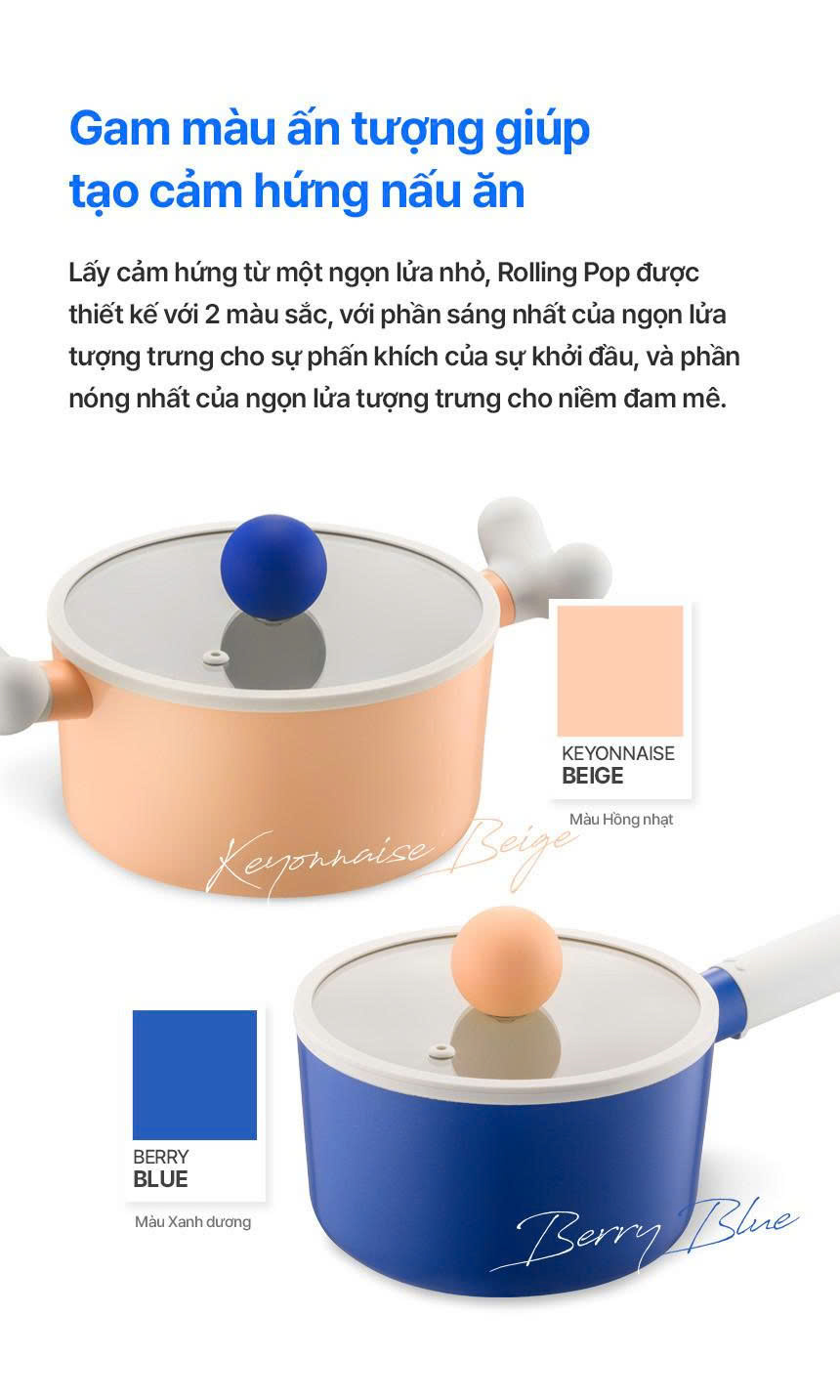 – MÀU SẮC NỔI BẬT: Gam màu ấn tượng giúp tạo cảm hứng nấu ăn. Lấy cảm hứng từ một ngọn lửa nhỏ, Rolling Pop được thiết kế với 2 màu sắc, với phần sáng nhất của ngọn lửa tượng trưng cho sự phấn khích của sự khởi đầu, và phần nóng nhất của ngọn lửa tượng trưng cho niềm đam mê.