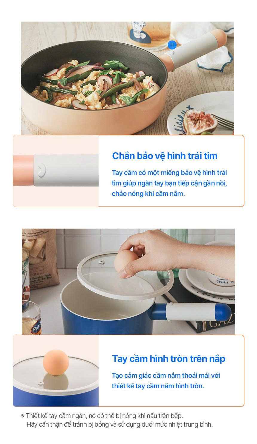 8. Vui lòng cẩn thận tay cầm có thể bị nóng khi nấu trên bếp vì tay cầm có thiết kế ngắn.