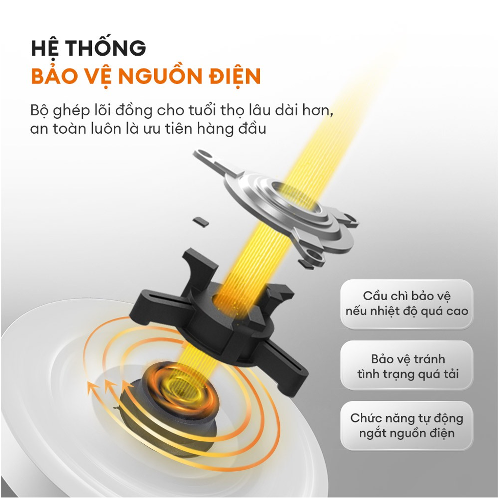 Sản phẩm hoạt động với công suất 1500W, nguồn điện áp 220V-50Hz. Nhờ công suất cao cho nên ấm đun nước cho khả năng đun nước sôi nhanh, tiết kiệm tối đa thời gian và điện năng.