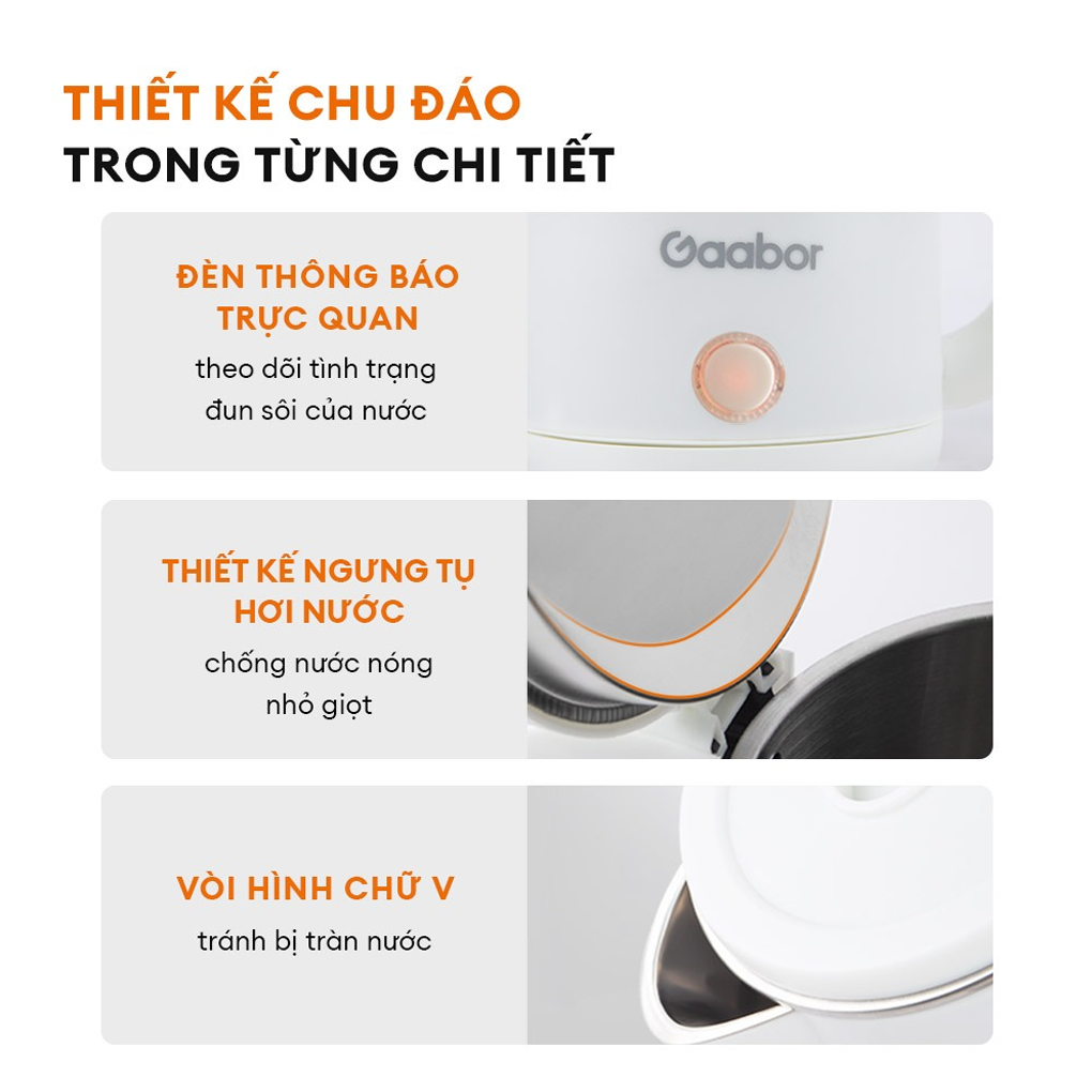 Ấm điện đun nước Gaabor EK20M-WH02A kiểu dáng đẹp