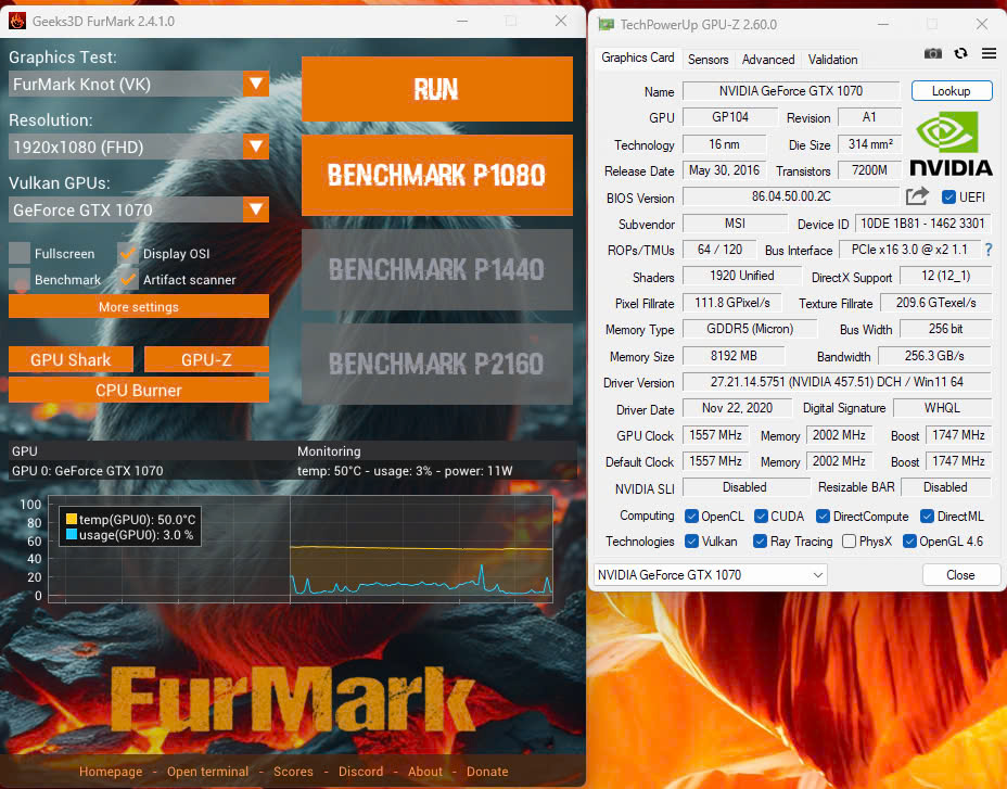 Card VGA MSI GTX 1070 ARMOR 8G OC đã qua sử dụng