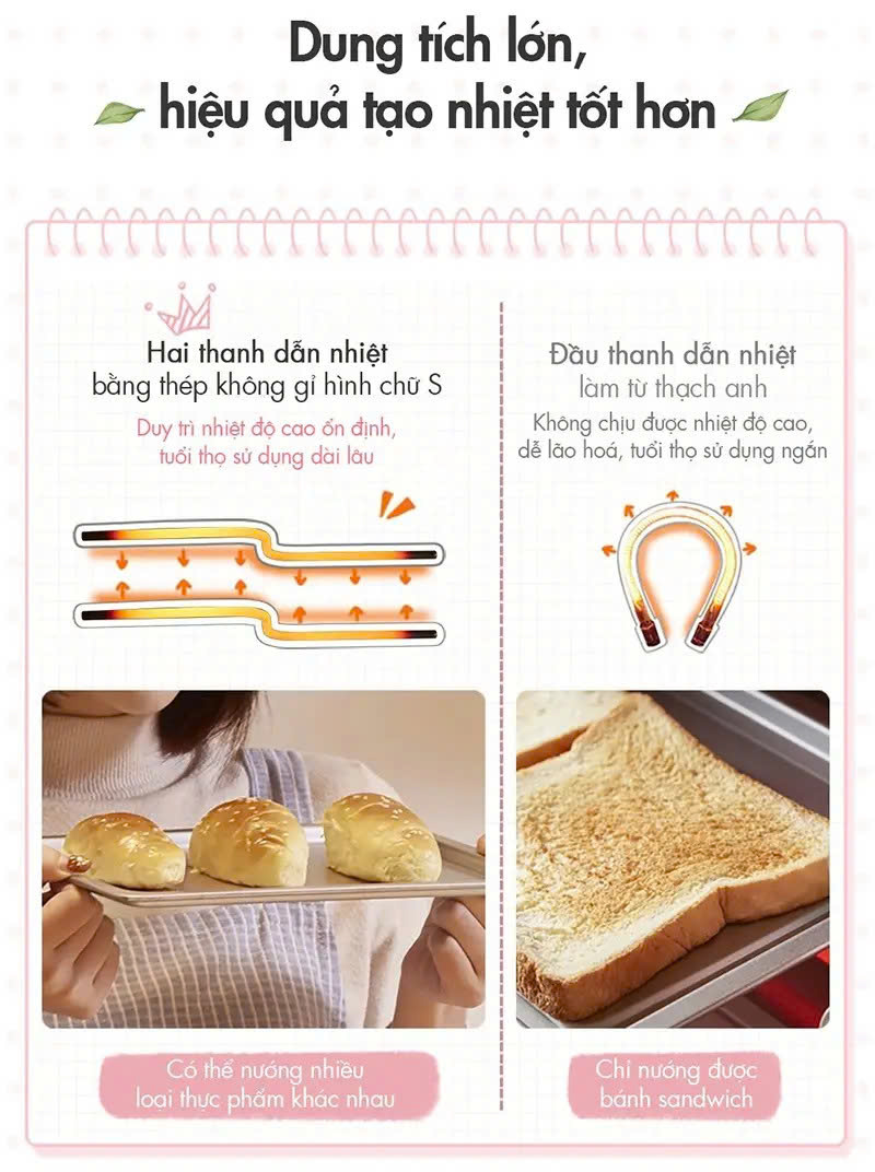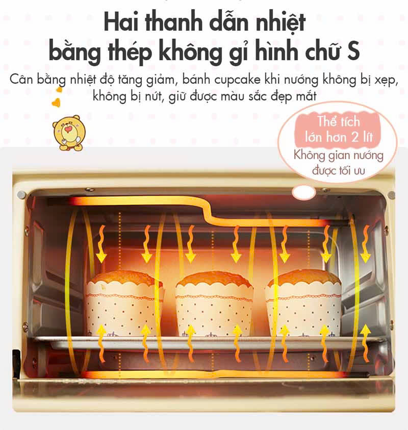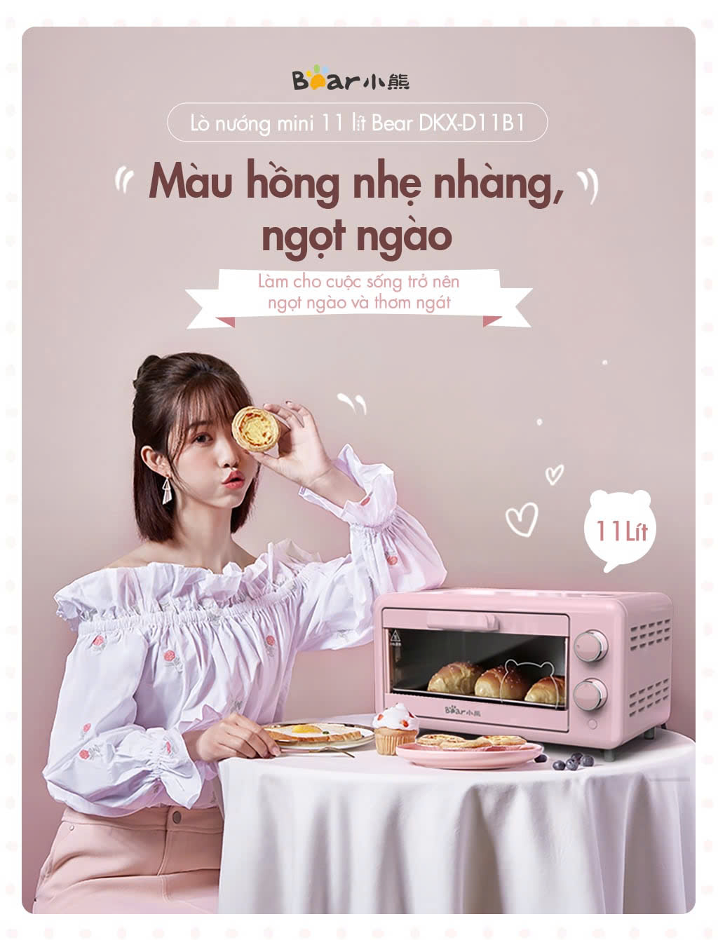 Với hệ thống thanh gia nhiệt mang lại hiệu quả cao, người dùng chỉ cần tập trung vào quá trình sơ chế, việc nấu nướng món ăn cứ để Lò nướng điện đa năng Bear DKX-D11B1 lo, Bear cho biết, với dung tích lên đến 11.0 L, Lò nướng điện đa năng Bear DKX-D11B1 có thể phục vụ khẩu phần ăn cho một gia đình nhỏ 2-3 người. Hơn thế nữa, với tính năng hẹn giờ, người nấu sẽ không mất nhiều công sức trong việc canh nhiệt, canh giờ, cứ sơ chế xong và chế biến nhanh với Lò nướng điện đa năng mới của Bear.