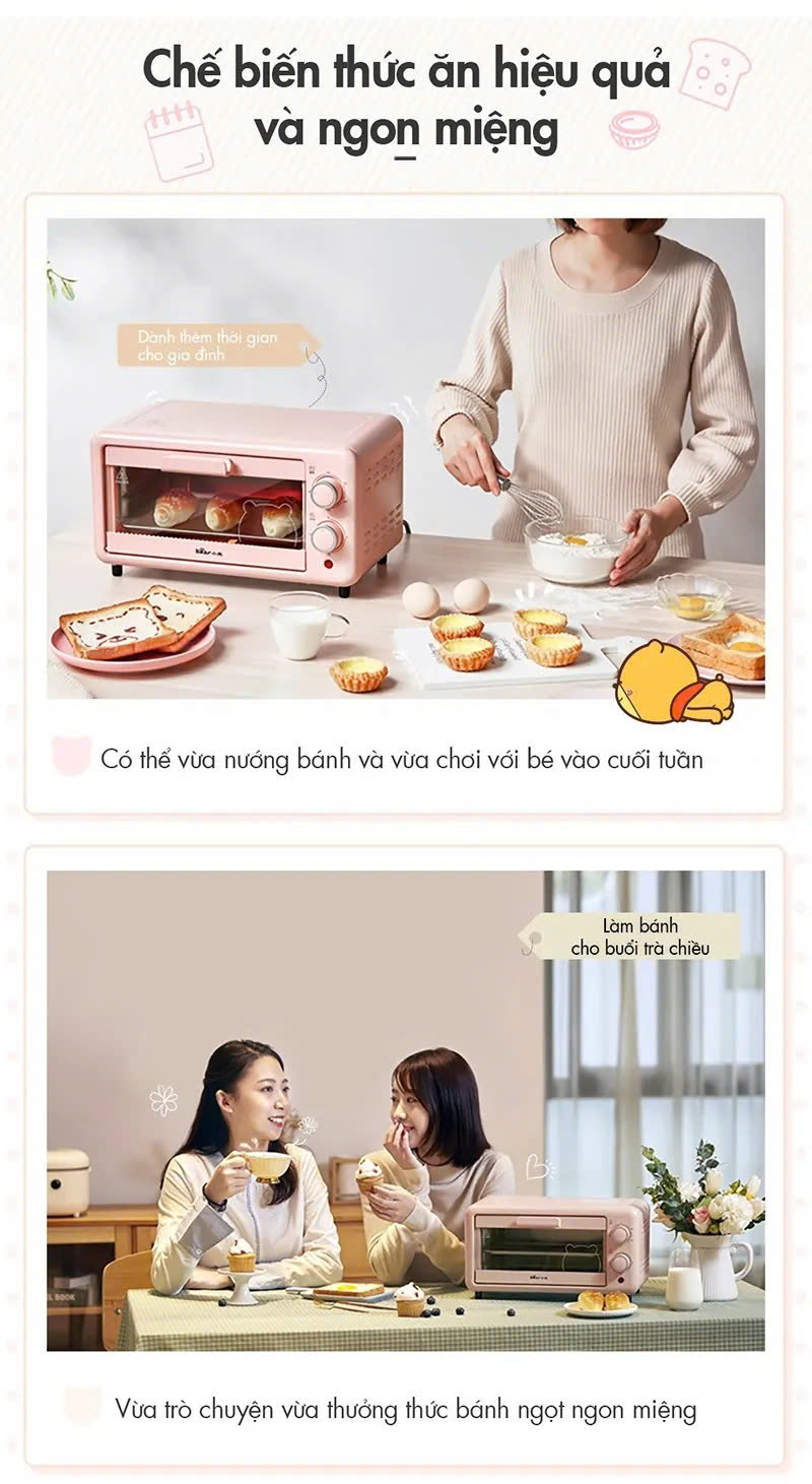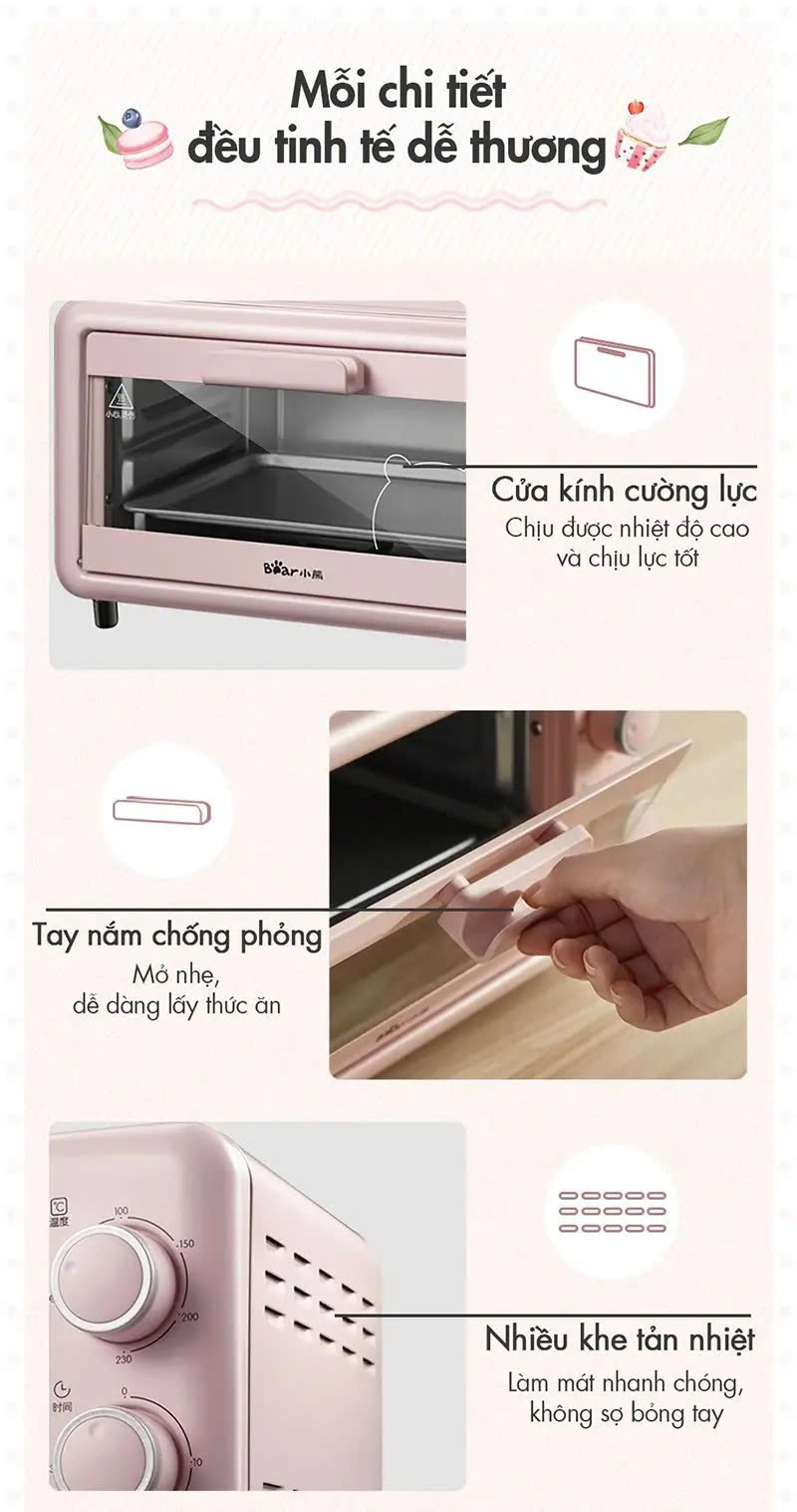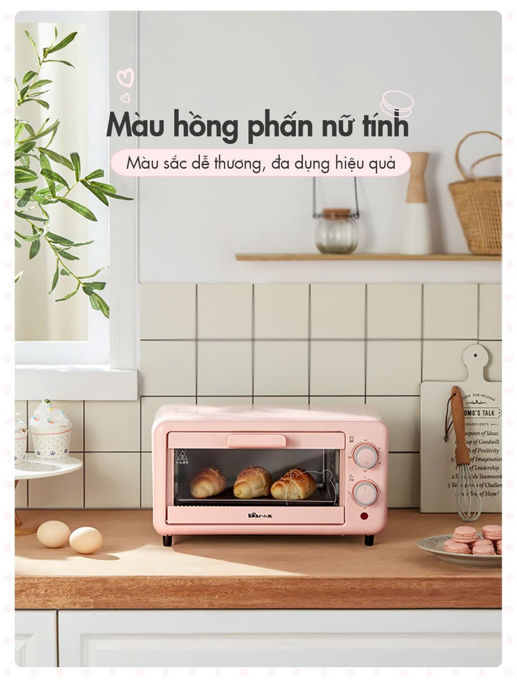 Với một lớp vỏ phủ một màu hồng lạ lẫm, cùng với thiết kế cửa kính xuyên thấu, Lò nướng điện đa năng Bear DKX-D11B1 thực sự mang đến một nét rất riêng, sản phẩm vừa là một thiết bị để nấu ăn, làm bánh, vừa là điểm nhấn đặc biệt cho không gian bếp của bạn