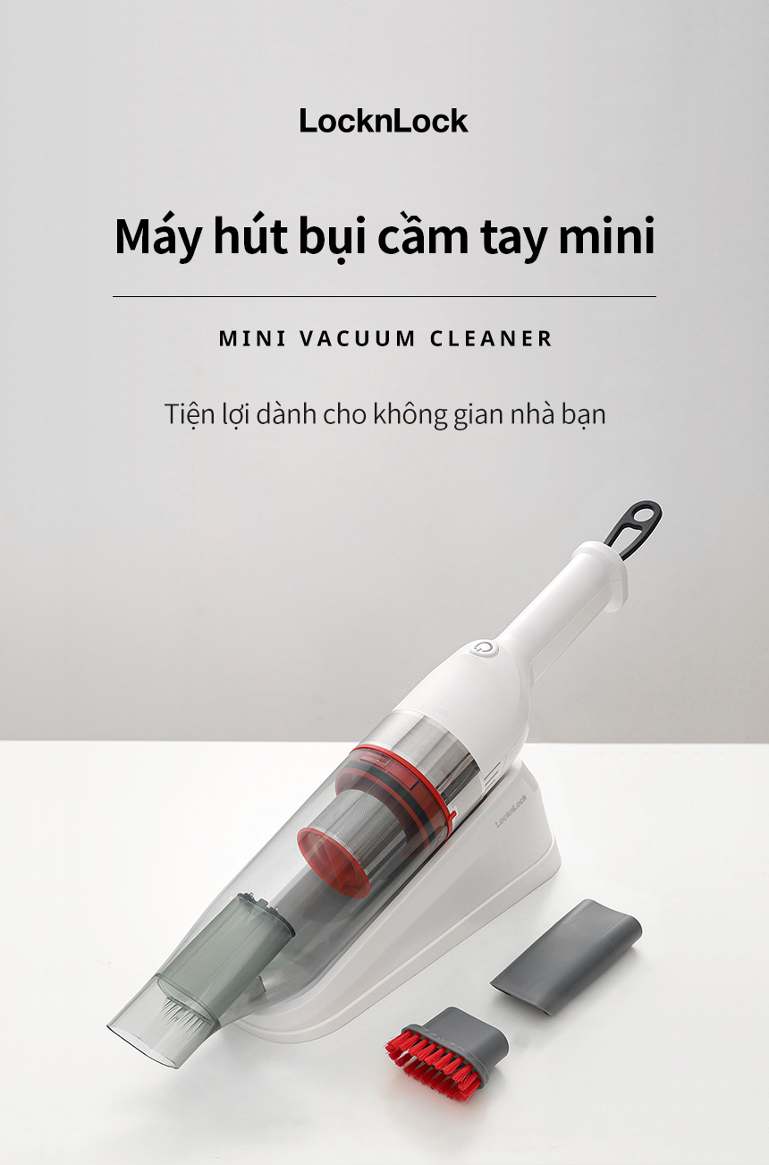 Máy hút bụi cầm tay mini 0.5L LocknLock ENV136WHT, Hàng chính hãng, bộ lọc HEPA, 2 mức, Lực hút mạnh, nhỏ gọn