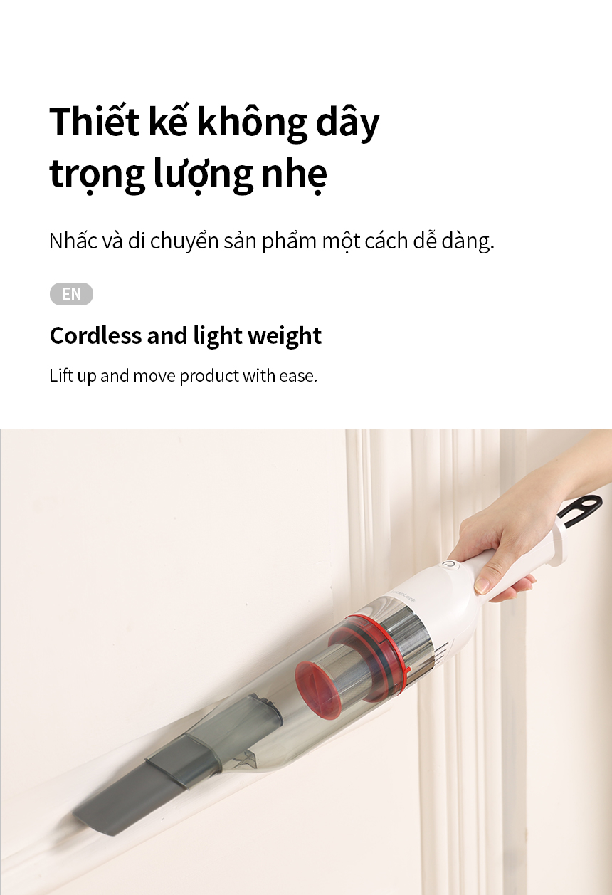 – THIẾT KẾ KHÔNG DÂY, TRỌNG LƯỢNG NHẸ: Nhấc và di chuyển sản phẩm một cách dễ dàng