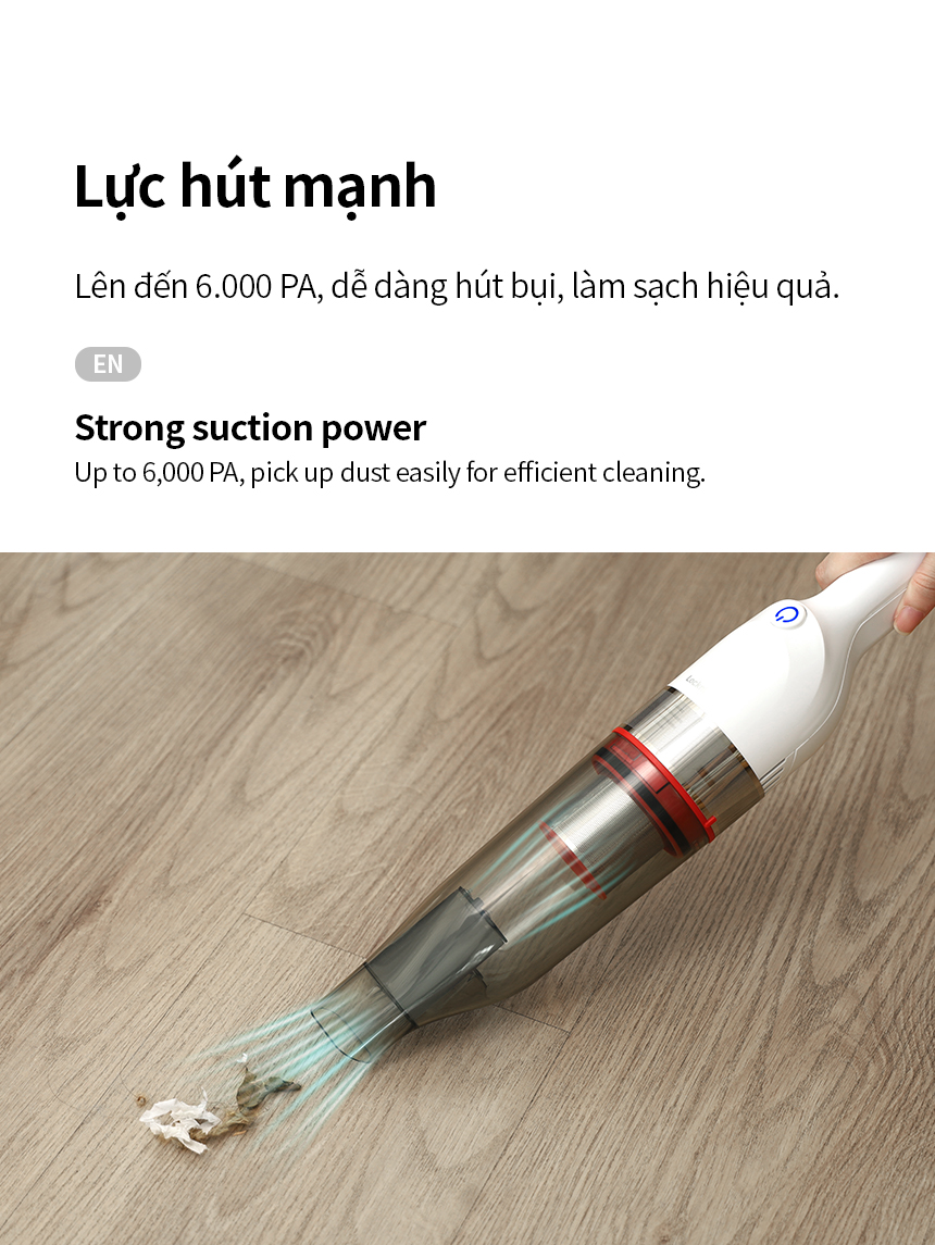 – LỰC HÚT MẠNH: Lên đến 6.000 PA, dễ dàng hút bụi, làm sạch hiệu quả