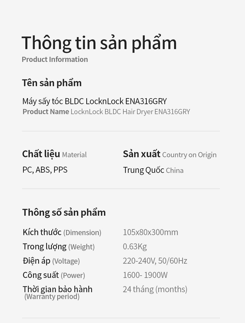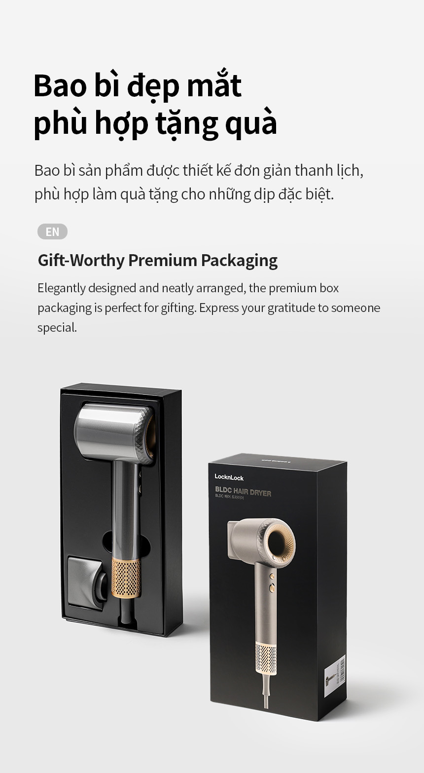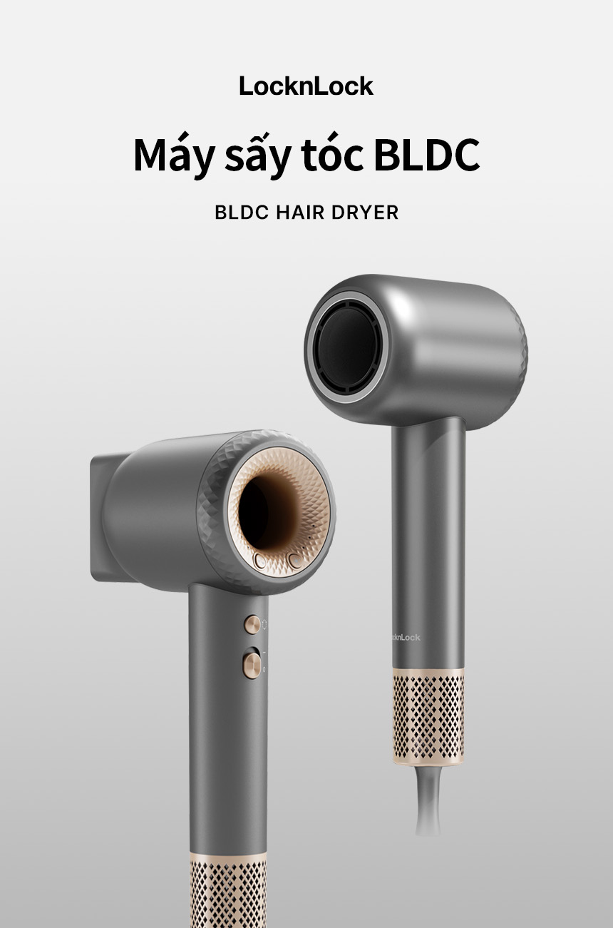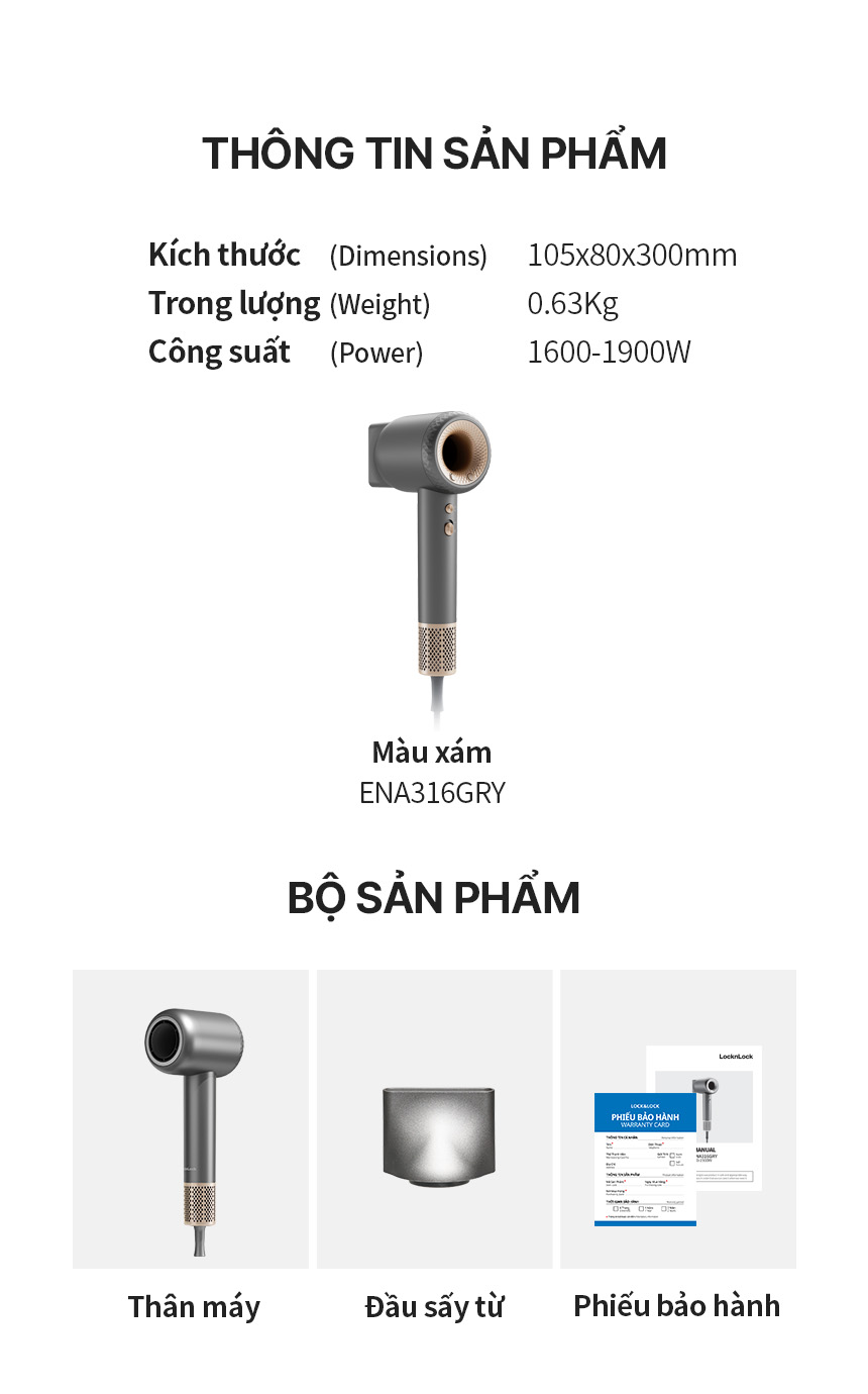 Máy sấy tóc ion âm LocknLock hair dryer đầu sấy từ 360 độ, chức năng tự làm sạch ENA316GRY