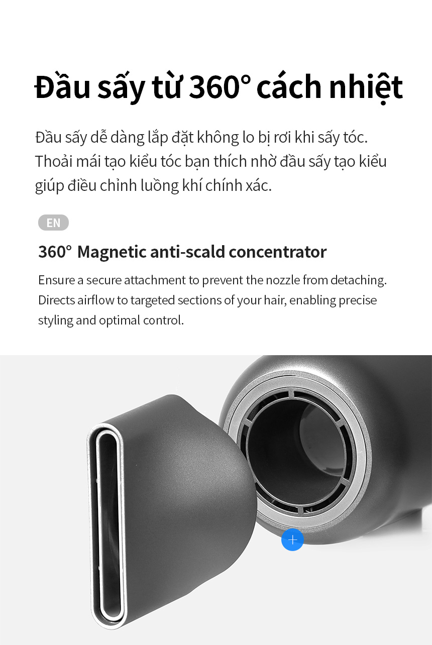 ĐẦU SẤY TỪ 360O: Lắp đặt dễ dàng và chắc chắn. Tập trung luồng khí, tạo kiểu dễ dàng hơn.