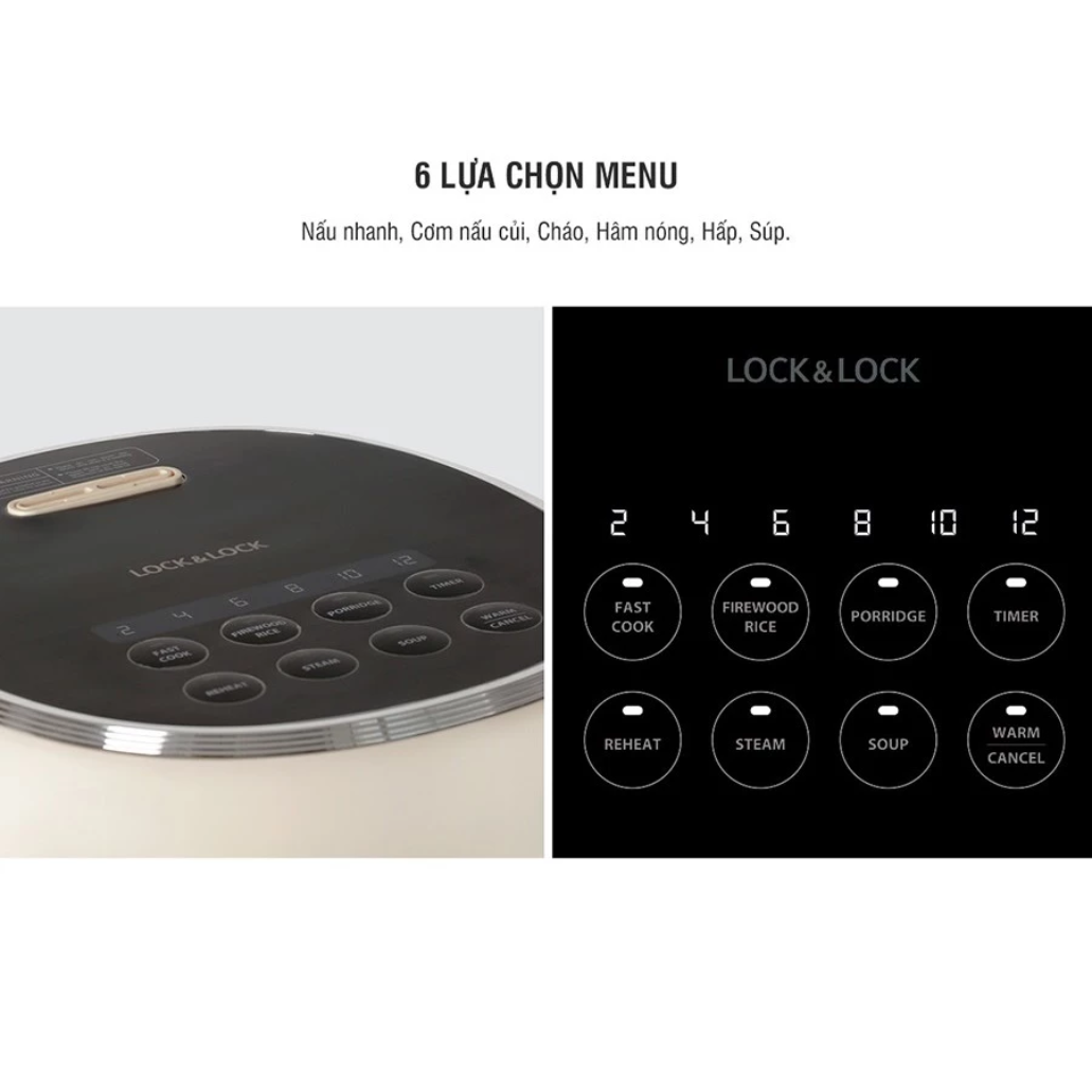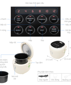 6 lựa chọn menu: nấu nhanh, nấu củi, cháo, hâm nóng, hấp, súp