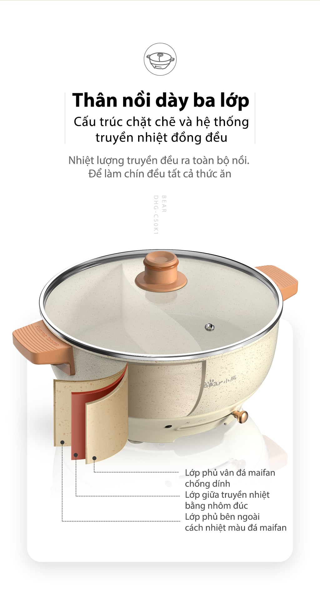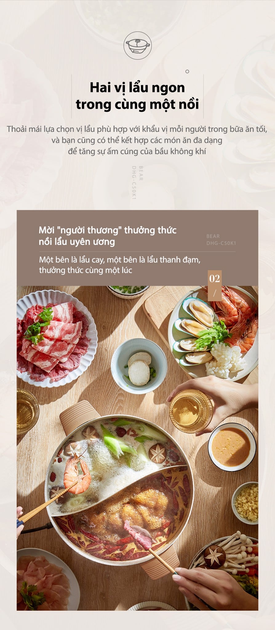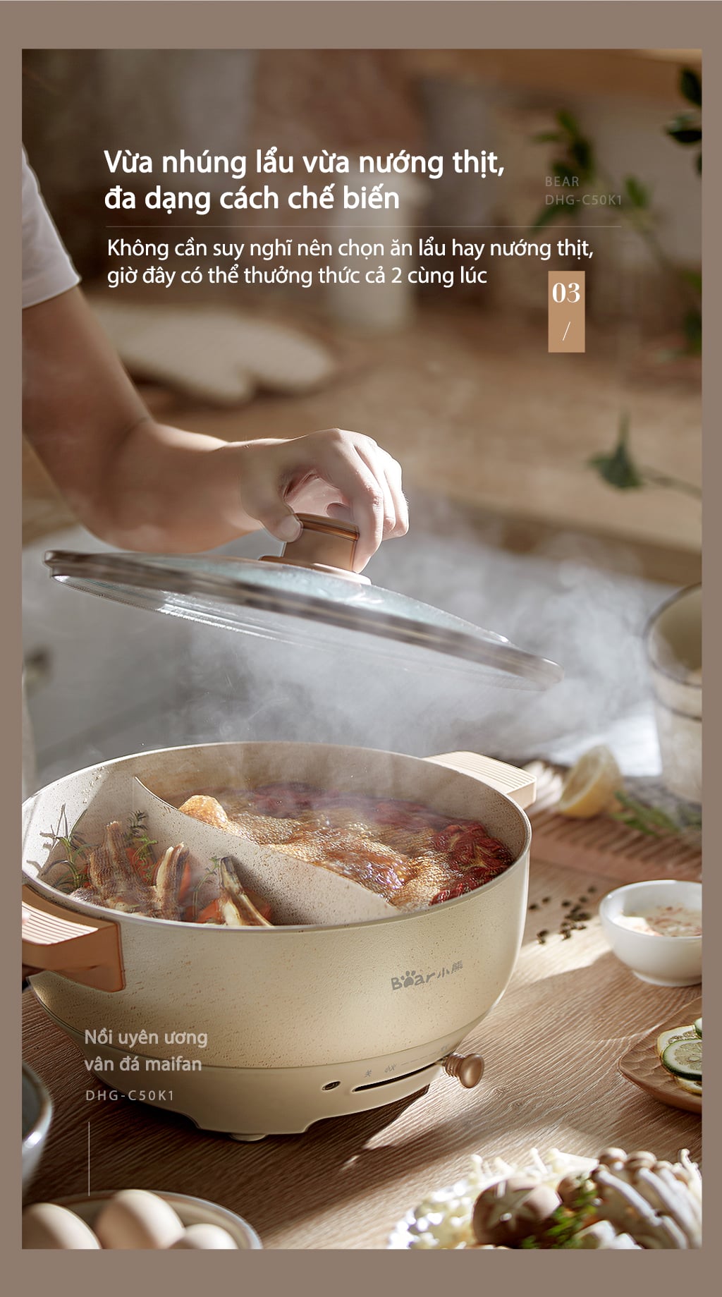 Nồi lẩu điện 2 ngăn Uyên ương Bear DHG-C50K1: Sự kết hợp hoàn hảo giữa công nghệ và truyền thống