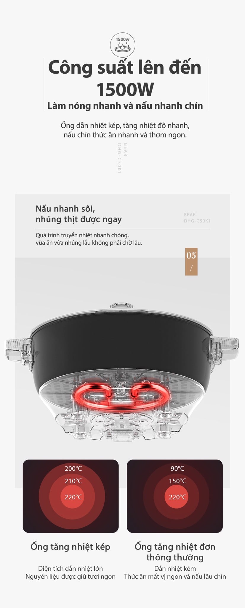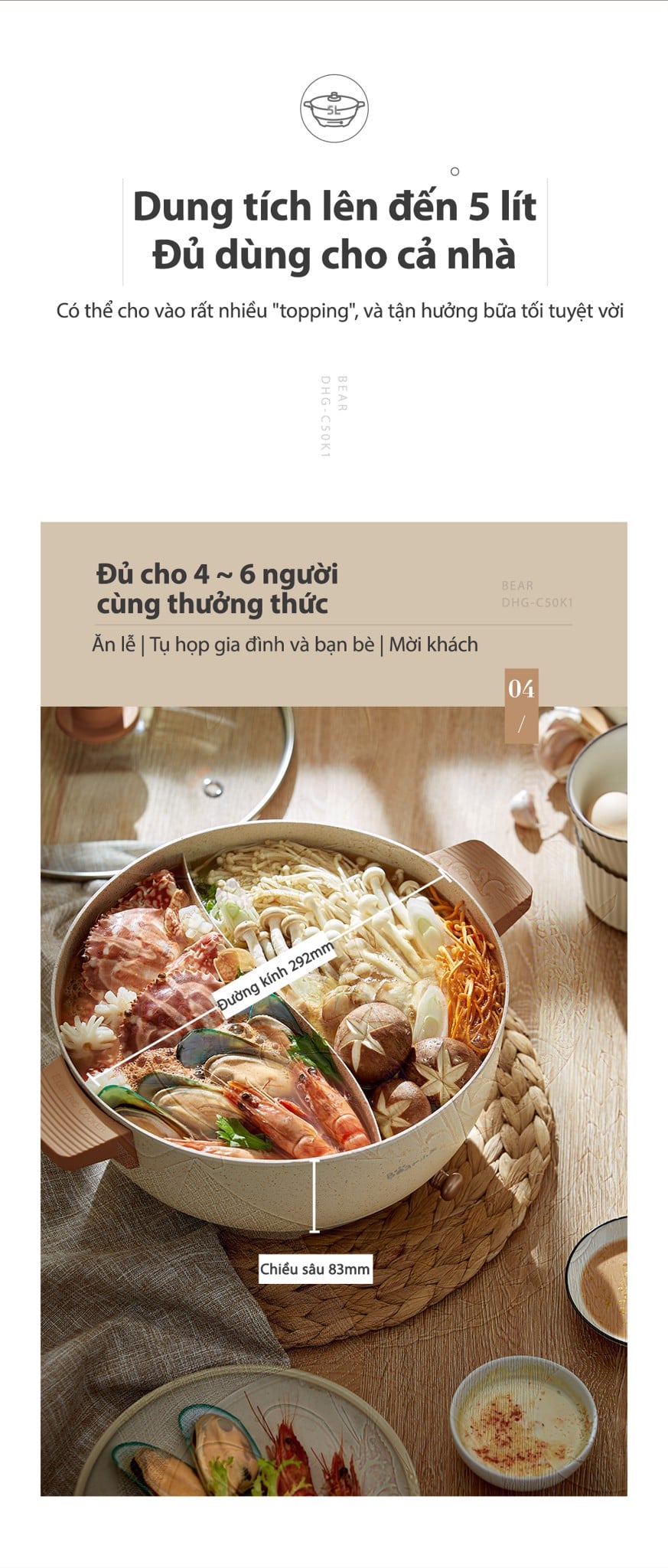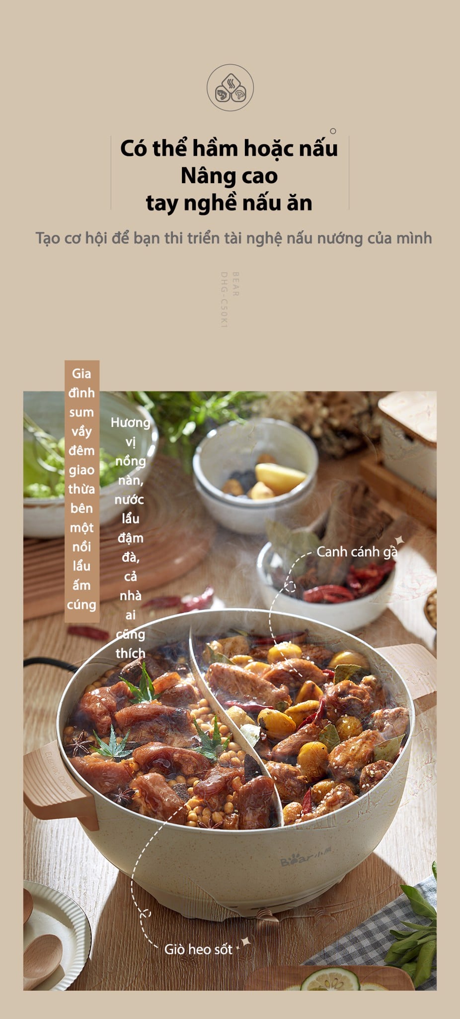 Nồi lẩu điện 2 ngăn Uyên ương Bear DHG-C50K1: Sự kết hợp hoàn hảo giữa công nghệ và truyền thống