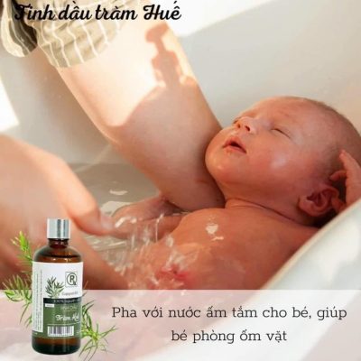 – Ngừa cảm lạnh và ngăn muỗi đốt – lúc tắm, bạn hãy nhỏ và giọt tinh dầu tràm vào chậu nước của con. Lưu ý không nên rửa nước vào mắt vì tinh dầu tràm có thể dây vào mắt con. – thoa vào lòng bàn chân, thái dương của bé trước lúc cho con ra ngoài trời lạnh.
