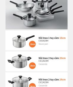 Nồi Chảo Quánh Inox 304 LocknLock Daily STS PPW, Dùng Cho Mọi Loại Bếp – 18cm 20cm 24cm 26cm