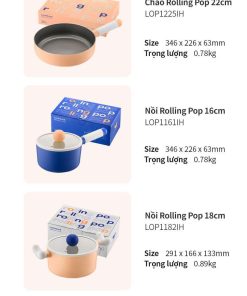 Nồi Quánh chống dính phủ ceramic Lock&Lock Rolling Pop LOP1161IH – có nắp thủy tinh 16cm bếp từ, gas