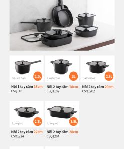Nồi, chảo chống dính hình vuông LocknLock Square-IH dùng được bếp từ nắp kính silicone 18cm – 24cm