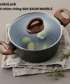 Nồi nhôm chống dính Baum Marble LocknLock, 2 tay cầm, nắp thủy tinh LBU1242/LBU1202 – 20cm 24cm