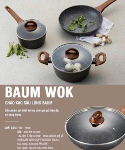 Thanh Lý Chảo nhôm sâu lòng chống dính BAUM Marble 30cm, nắp thủy tinh Lock&Lock LBU1305